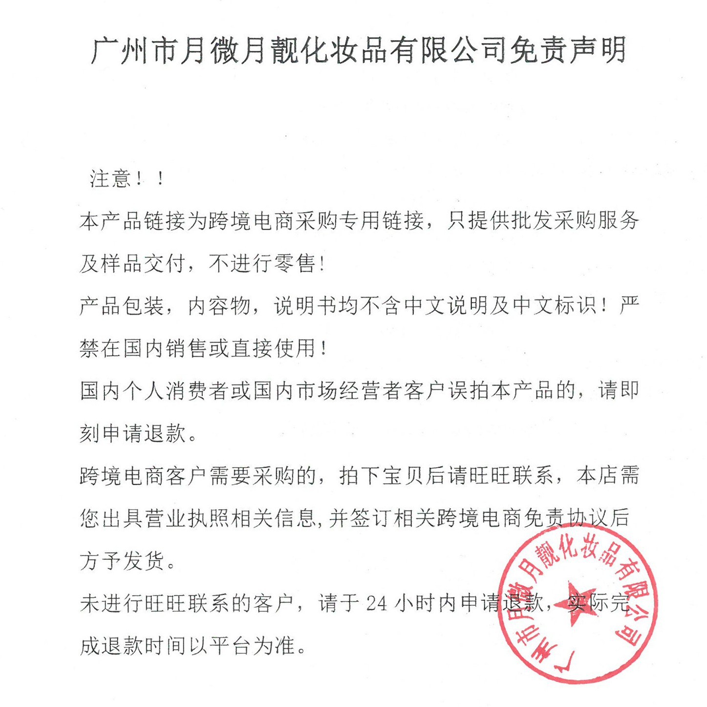 ⚠️ 本产品为【出口专供】化妆品,仅面向海外客户或跨境平台商家销售,**不在中国境内流通或零售**。 根据《化妆品监督管理条例》第十七条规定,仅在中国境内销售的进口化妆品需备案并贴中文标签。 本商品属于海外专供用途,无需中文标签与国内备案。 若您非海外商家或个人买家,请慎重下单。 如误拍或需求变动,可联系客服取消订单。 |