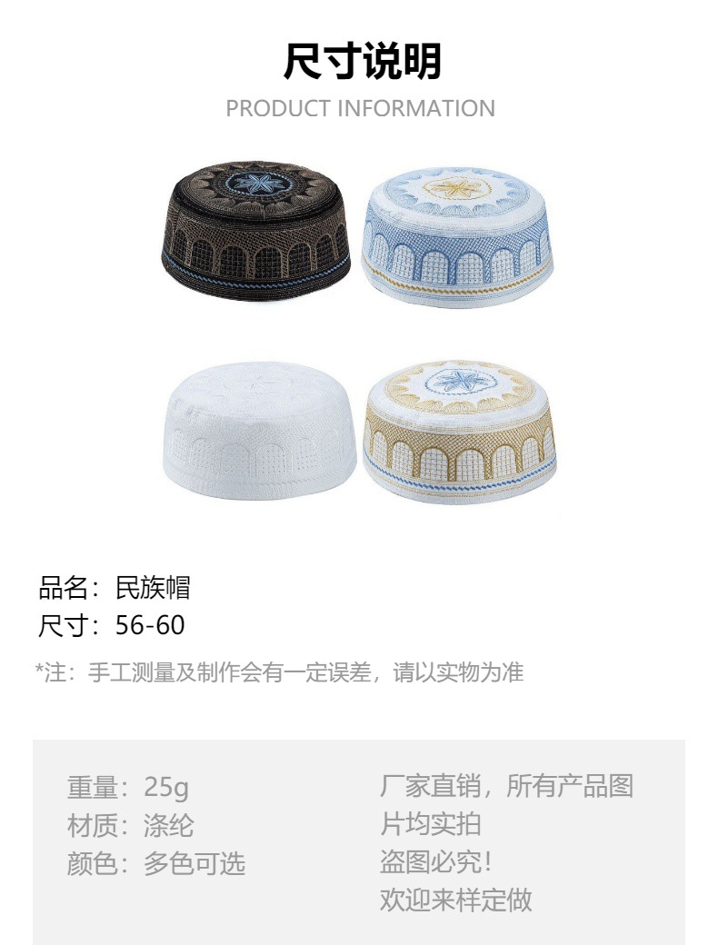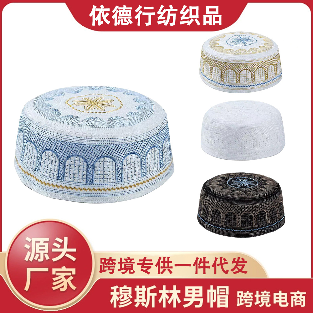 Трансграничные поставки вышитых шляп Хуэй, компьютерная вышитая шляпа, белая шляпа, мужская этническая шляпа оптом
