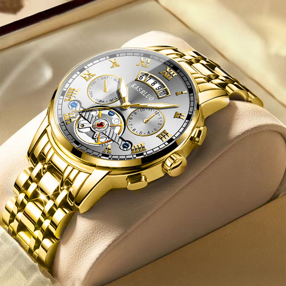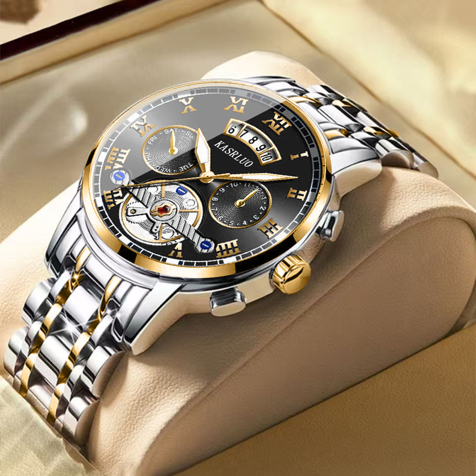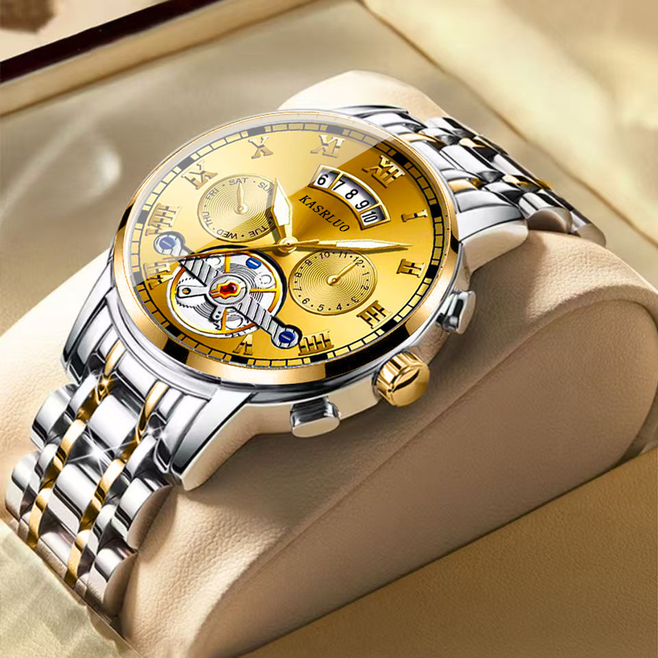 Новые трансграничные часы из нержавеющей стали с поддельным турбийоном, высококачественные мужские модные светящиеся водонепроницаемые мужские часы, модель со стальным ремешком