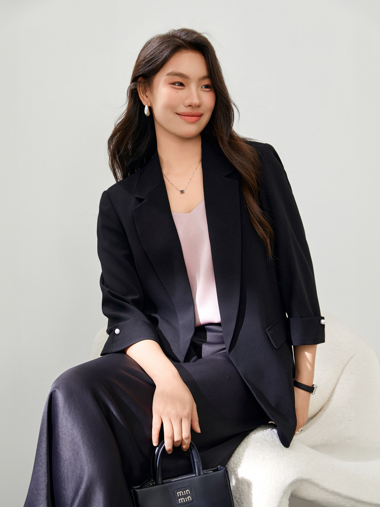 [Простой, дикий рукав, острый пиджак] Полноцветный большой размер женский толстый mm2025 весенний новый