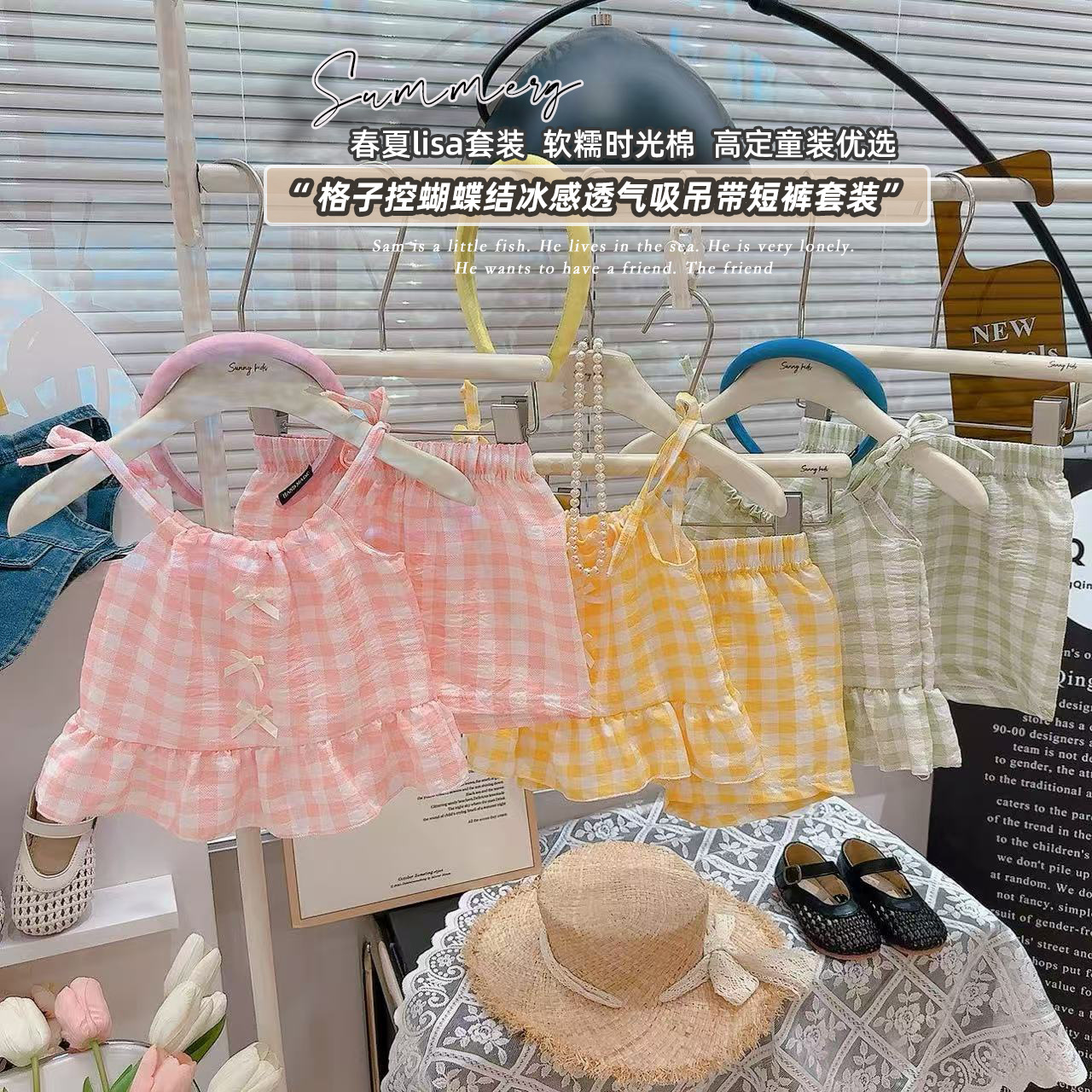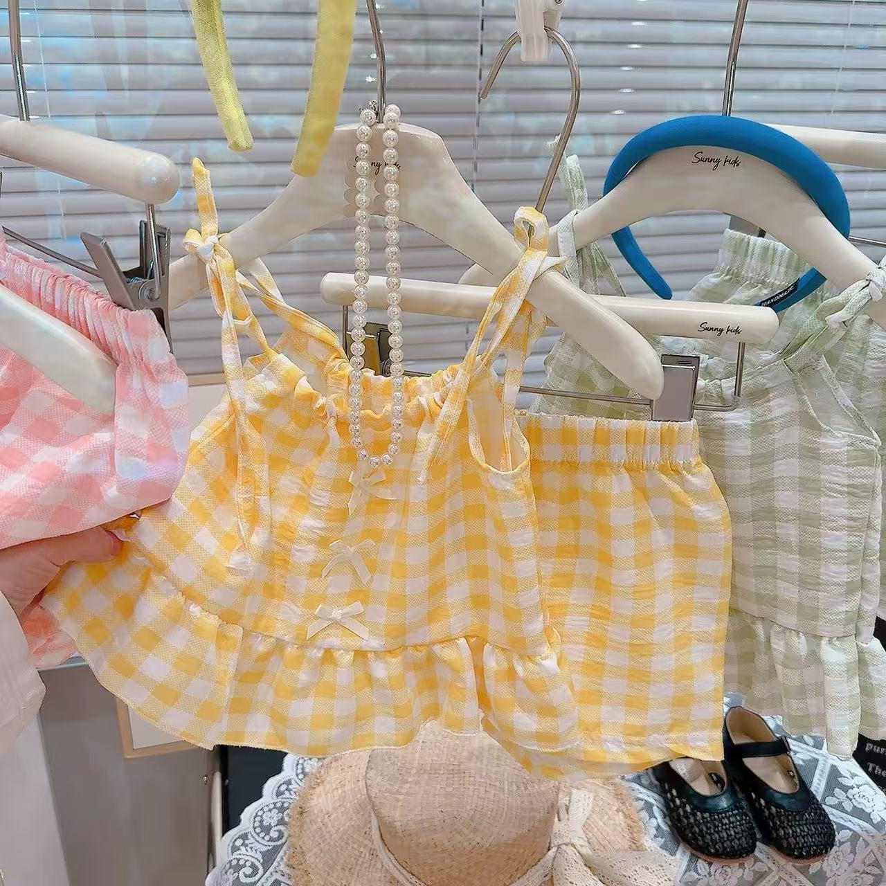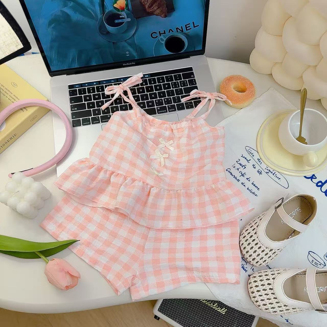 Внешняя торговля клетчатый контроль набор из двух частей 2025 летнее дизайнерское платье сладкая детская юбка свободная пляжная юбка