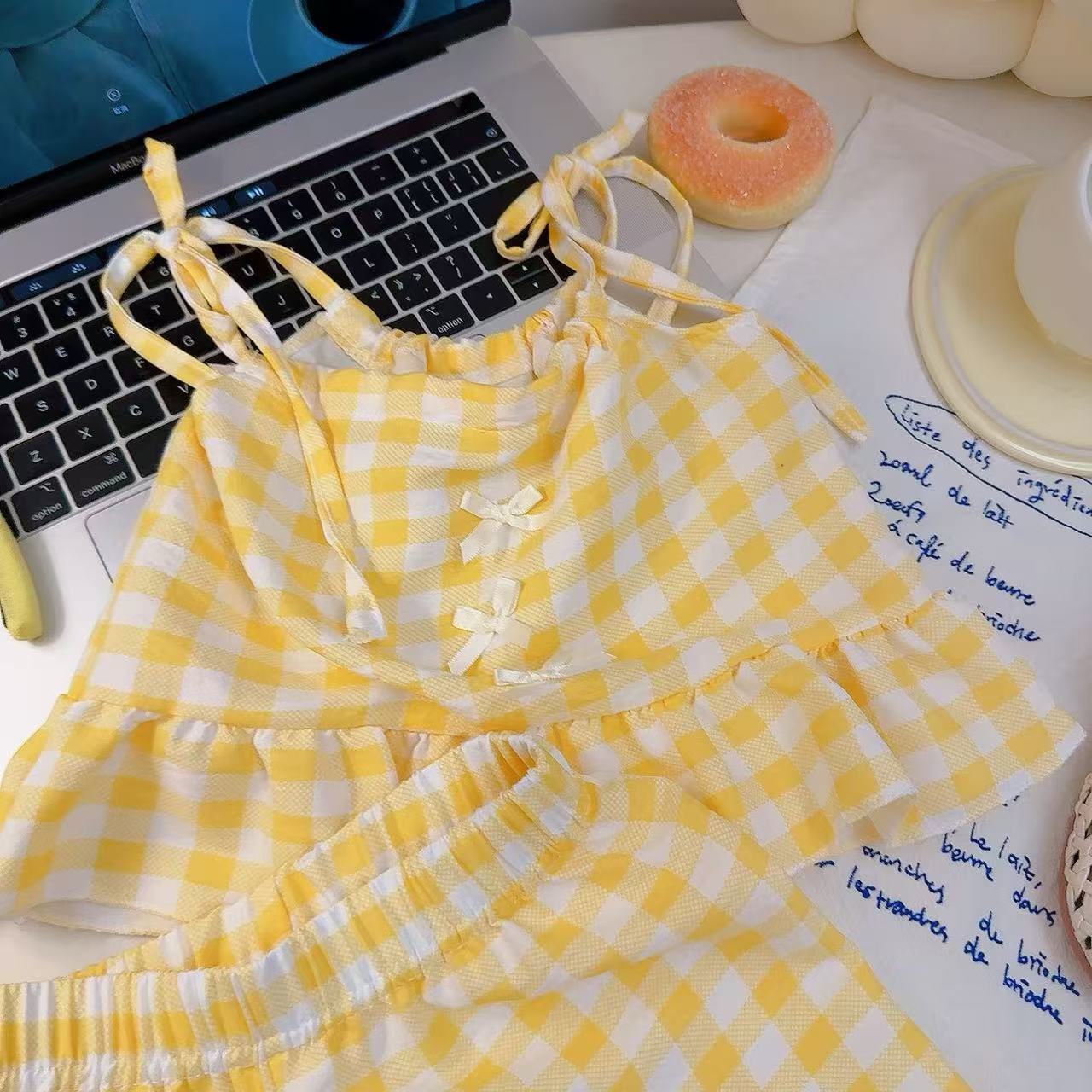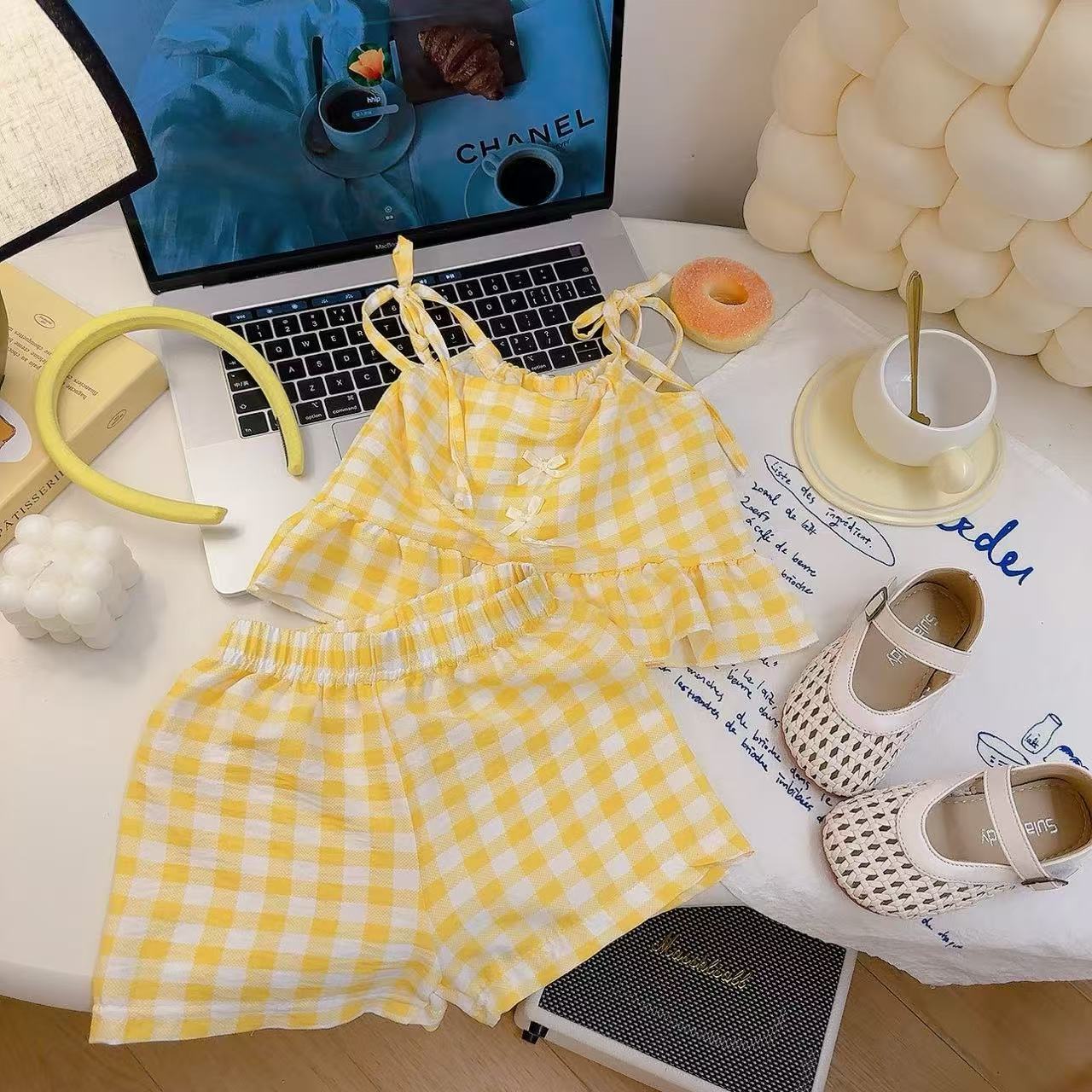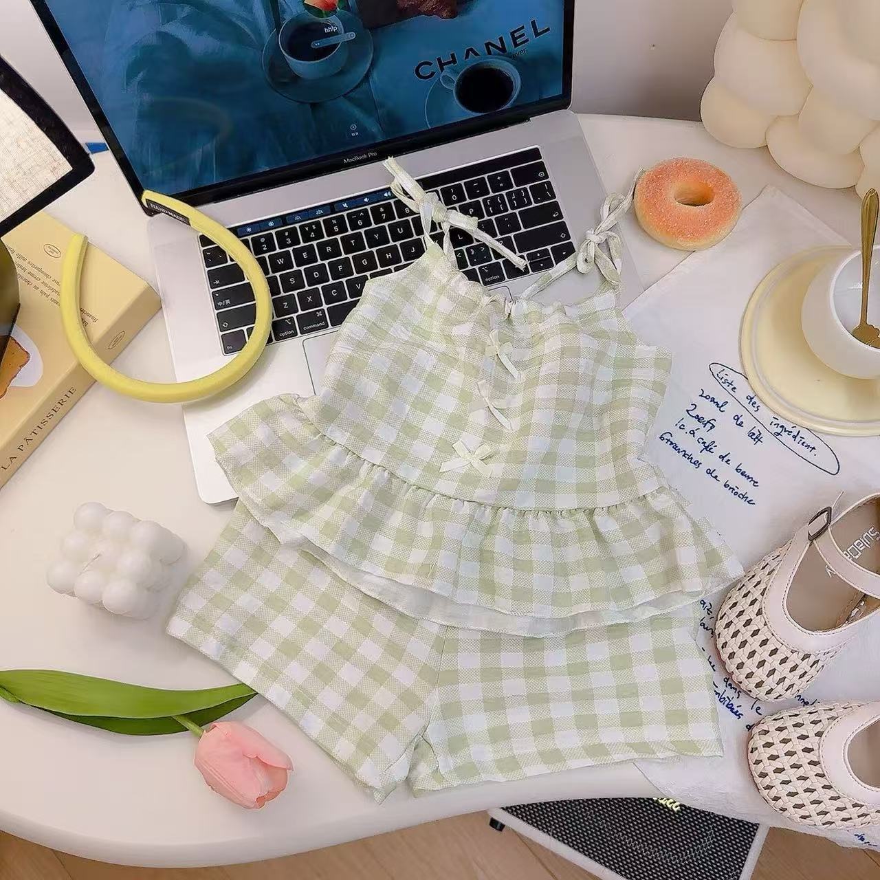 Внешняя торговля клетчатый контроль набор из двух частей 2025 летнее дизайнерское платье сладкая детская юбка свободная пляжная юбка