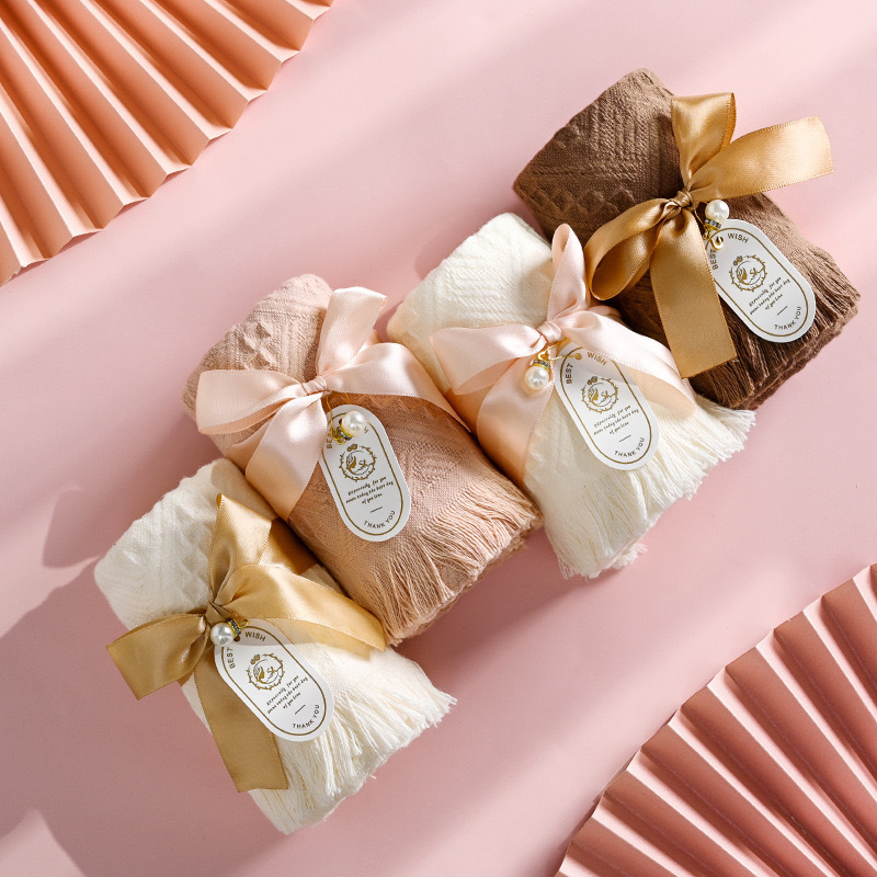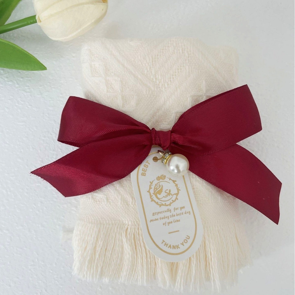Сувенирное полотенце с кисточками, подарок на свадьбу, креативный сувенир для свадебных торжеств, корпоративных мероприятий, из чистого хлопка, небольшой подарок