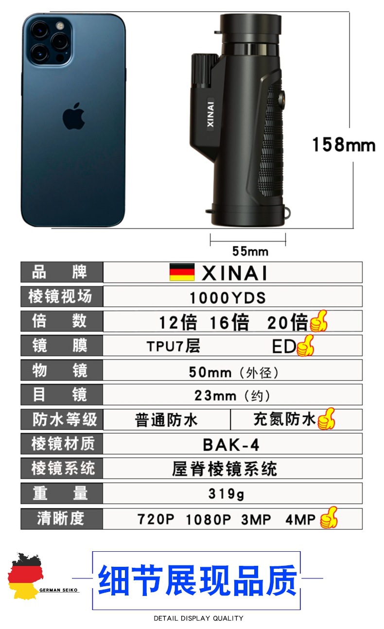 Немецкий монокулярный телескоп XINAI высокой высокой четкости