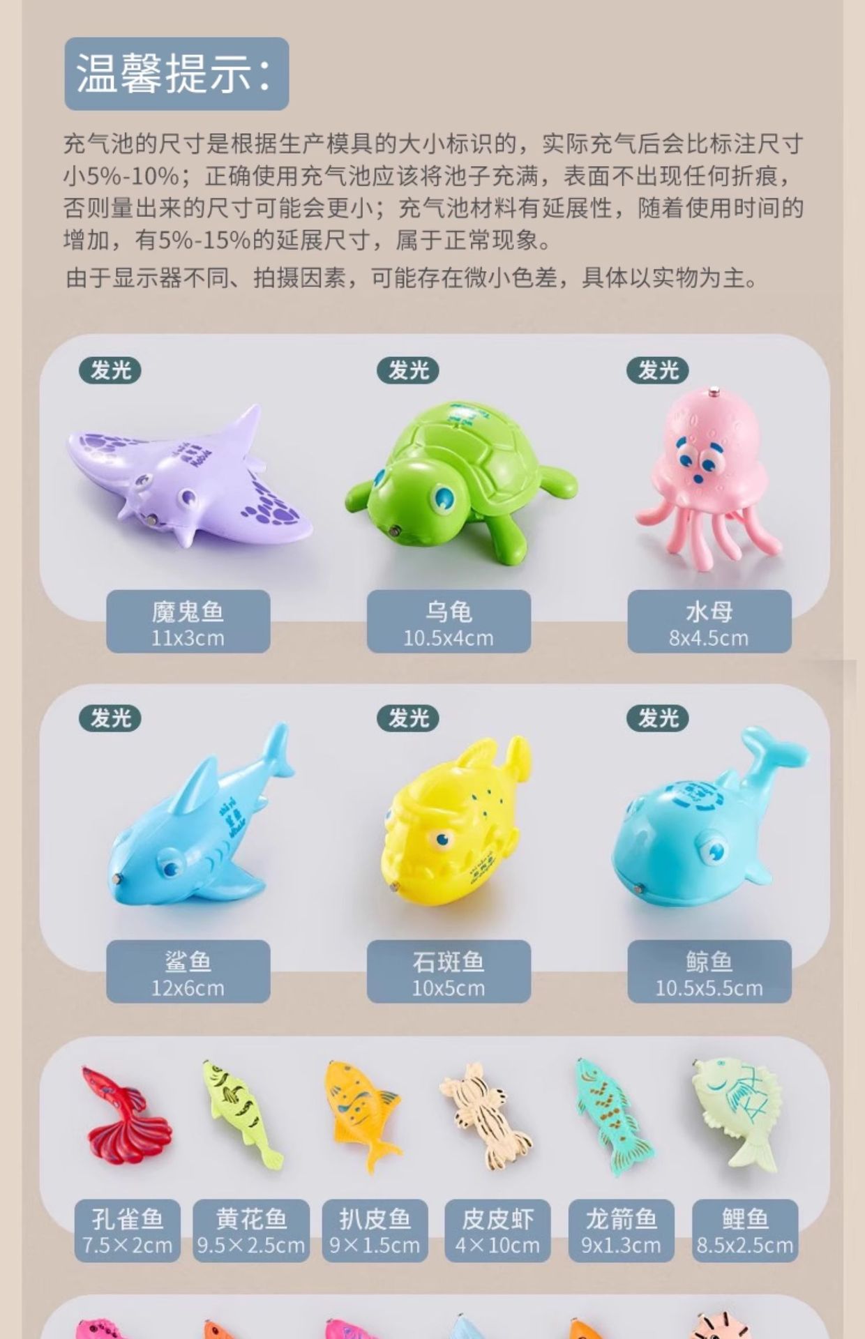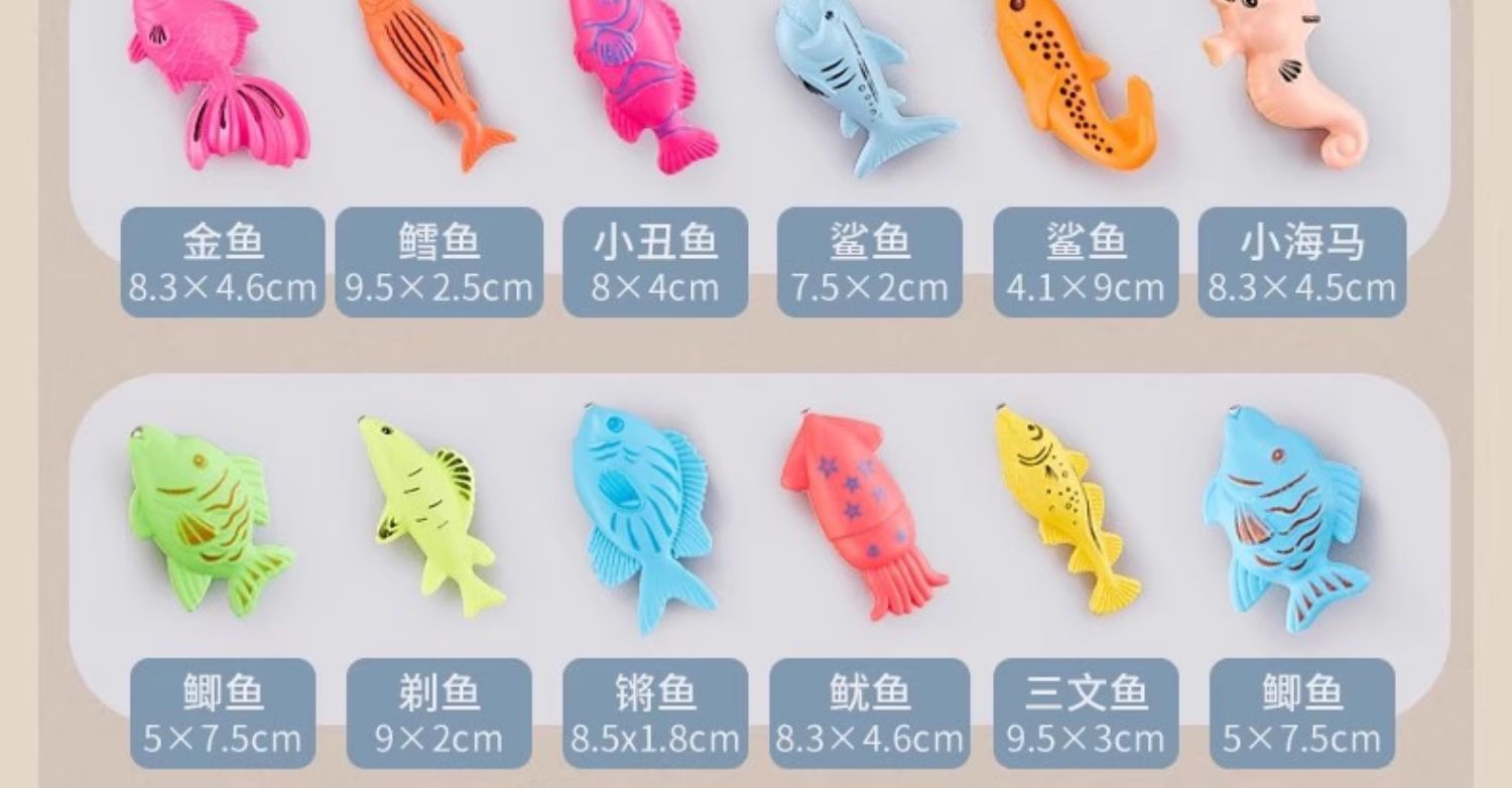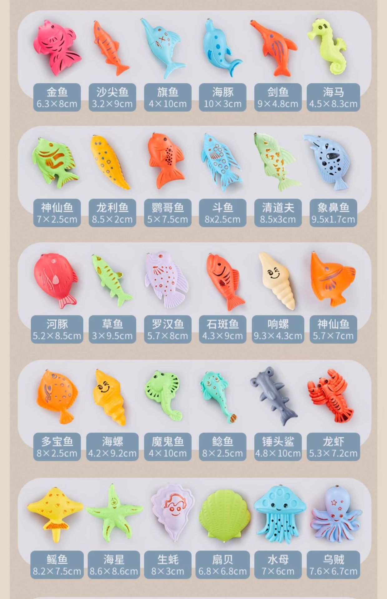 1 удочка для дельфина; 1 телескопическая штанга с ручным управлением; 1 телескопическая штанга; 1 маленькая удочка; Поймайте 1 горсть большой сеткой.; 1 сетевой улов; 1 рыболовное ведро; 1 двусторонняя трехмерная рыбка; 1 однослойный небольшой квадратный бассейн; 1 однослойный большой квадратный бассейн; 1 двухслойный круглый бассейн; 1 круглый бассейн с принтом 90; 1 индукционная светящаяся рыба; 10 трехмерных фруктов и овощей; 4 больших немагнитных крючка для удочек в виде дельфинов.; 4 обычных больших рыболовных крючка для дельфинов; 4 рыболовных крючка с телескопической удочкой; 4 маленьких фиолетовых крючка для удочки; 1 большая золотая арована; 1 большой синий кит; прозрачная рыба; Двусторонняя трехмерная рыбка/10 шт./упак.; Двусторонняя трехмерная рыбка/15 шт./упак.; Двусторонняя трехмерная рыбка/20 шт./упак.; Двусторонняя трехмерная рыбка/25 шт./упак.; Двусторонняя трехмерная рыбка/30 шт./упак.; Двусторонняя трехмерная рыбка