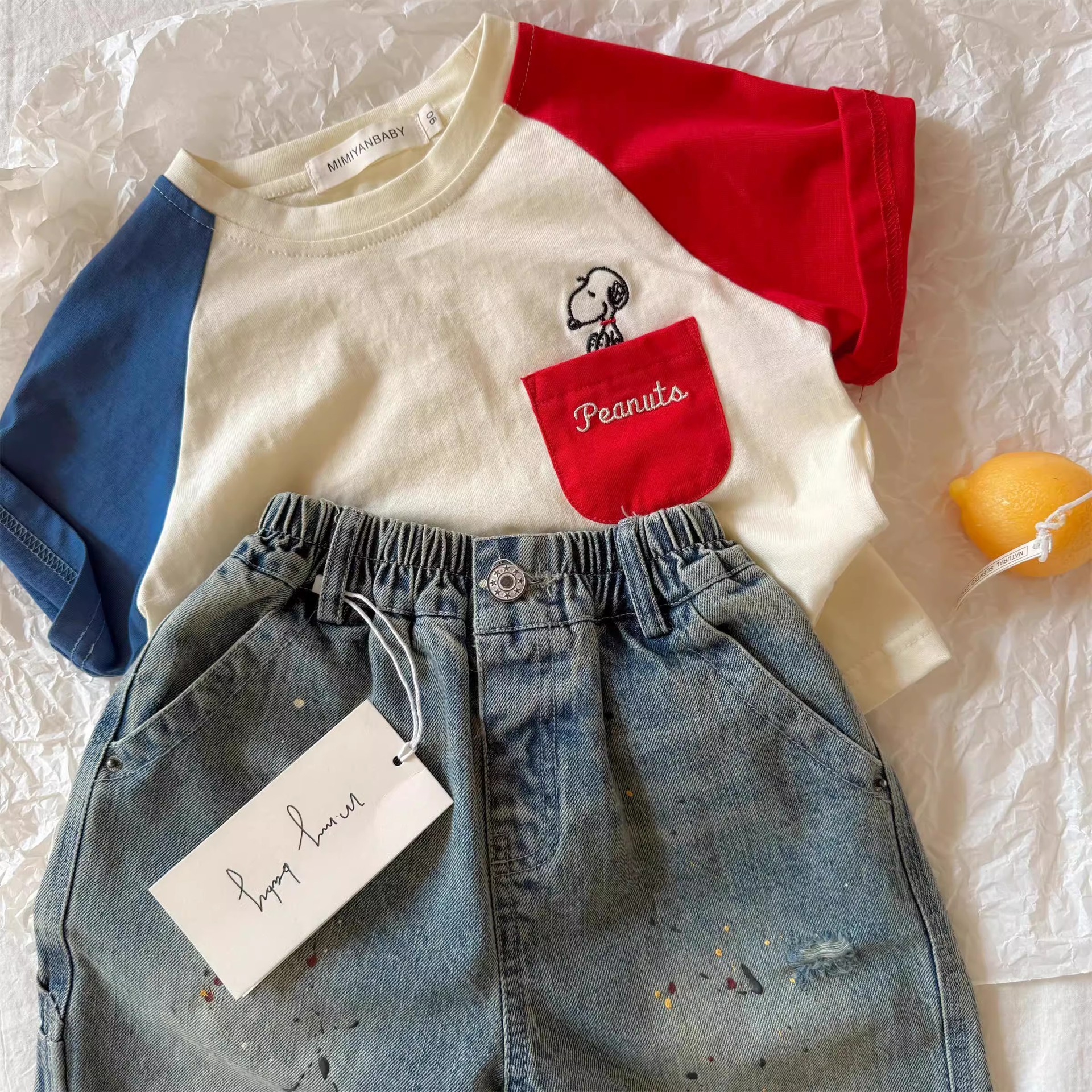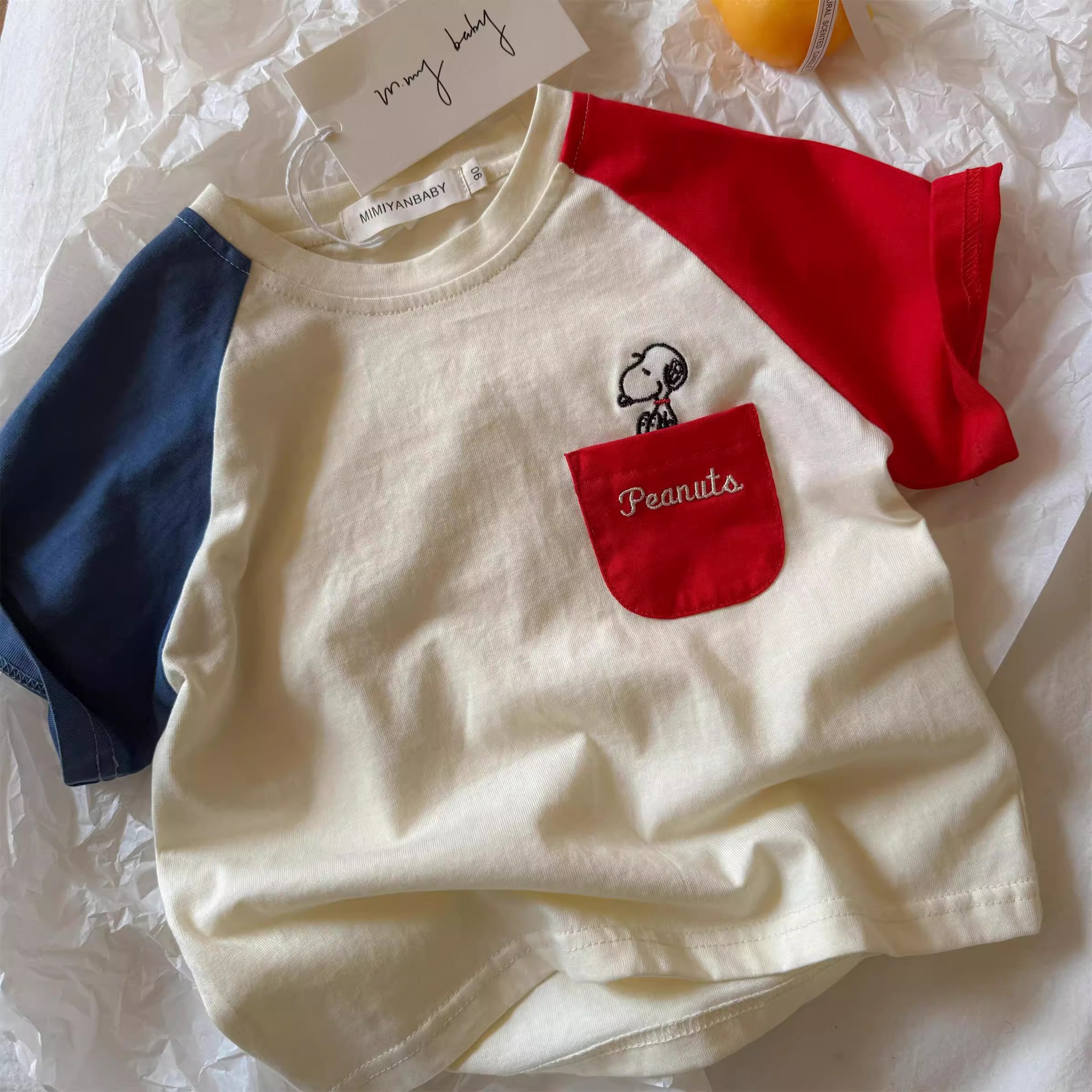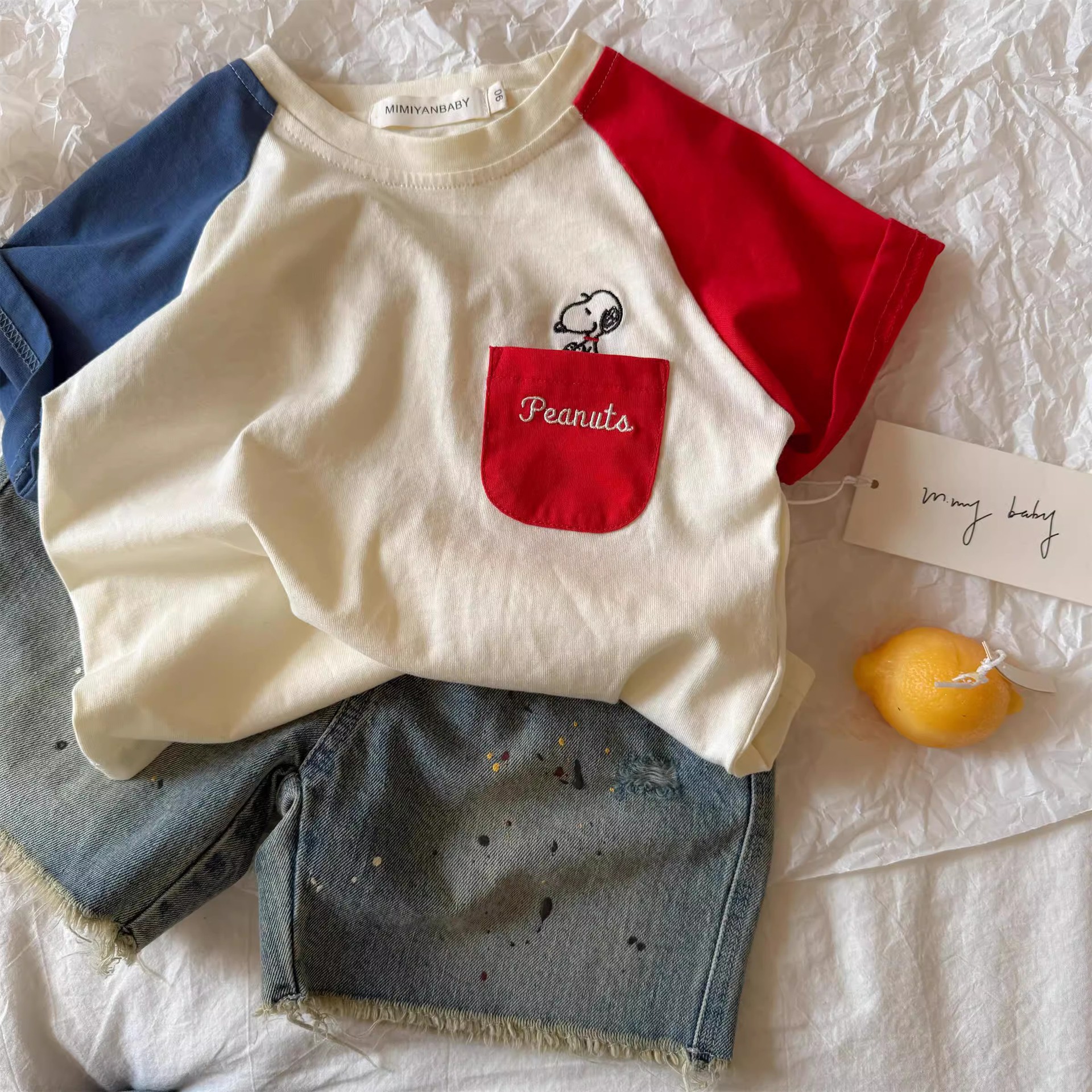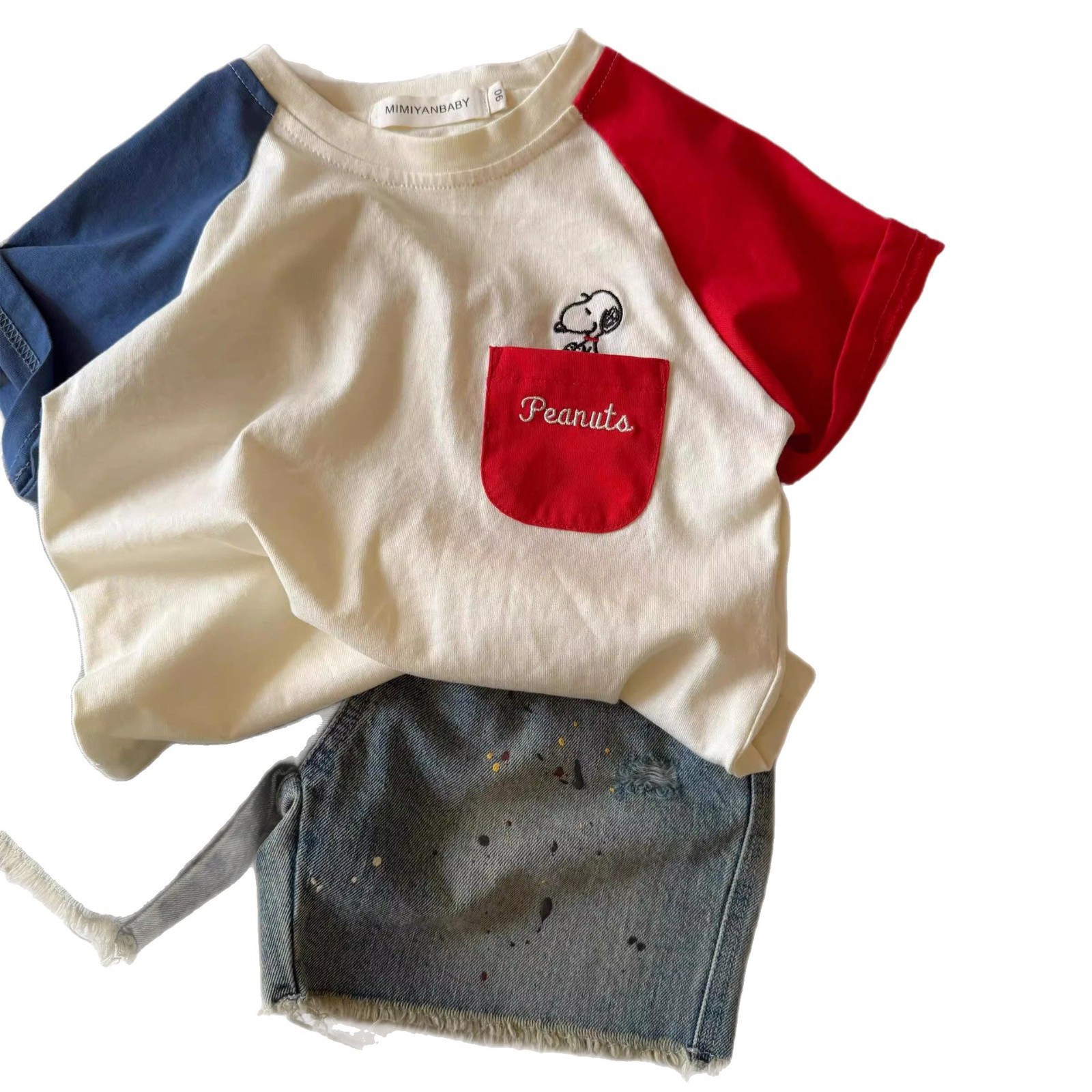 Детская хлопковая футболка реглан с короткими рукавами в летнем стиле 2025 года для мальчиков и девочек с героями мультфильмов, детская детская футболка контрастного цвета с тонкими половинками рукавов