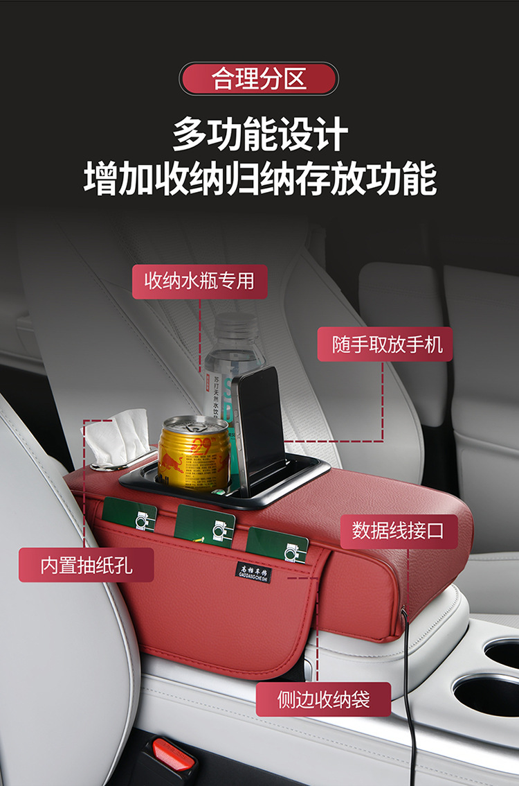 Зарядка мобильного телефона, встроенный автомобильный центральный подлокотник, коробка, автомобильный многофункциональный подстаканник, многофункциональное усиление для хранения мобильного телефона