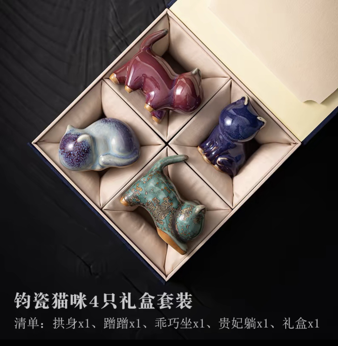 Котенок осеннего цвета; Императорская кобура, красный котенок; Маленький Лай ложится; Императорская коха ложится; Втирание; Сидеть хорошо; Юн фарфоровый кот, 4 шт.; Подарочная коробка Сяо Лай Па; Подарочная коробка «Королевская сидица лежит»; Подарочная коробка Цэнцэн; Подарочная коробка «Сидит хорошо»; Подарочная коробка из 4 предметов с котом из фарфора «Джун»
