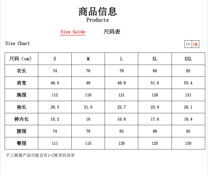 S; M; L; XL; XXL