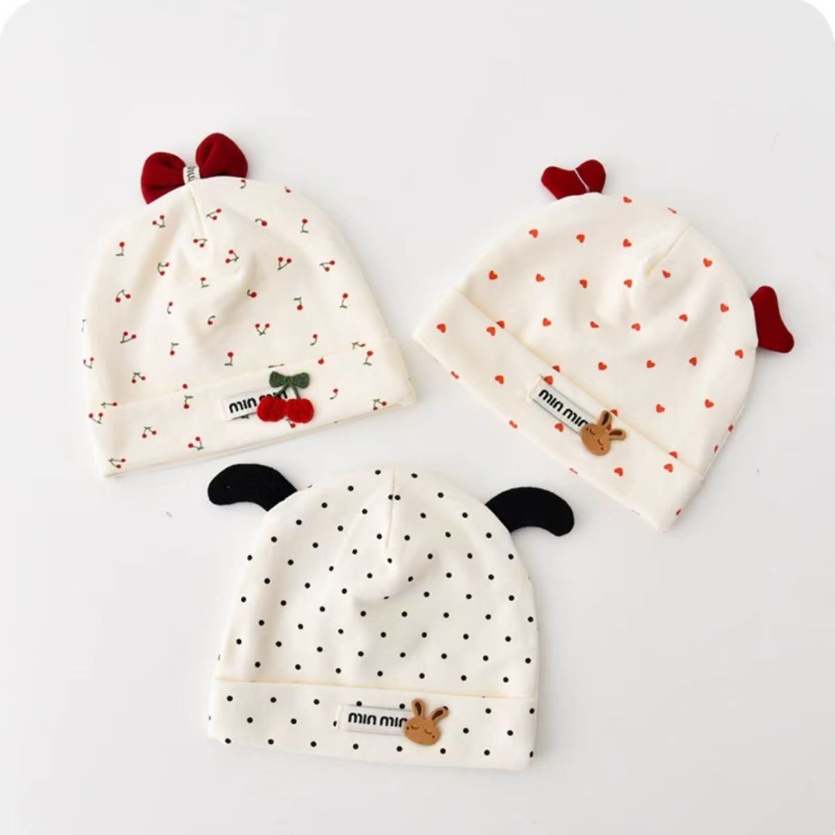 Шапка для шин Wave Dot из чистого хлопка; Шапочка для плода из чистого хлопка Love; Шапочка из чистого хлопка вишневого цвета; Кепка из чистого хлопка с бантом