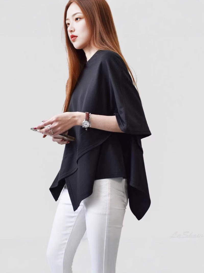 6535 хлопок минималистский дикий модный новый нишевые корейские версии дизайна скрещенные неправильные блузки
