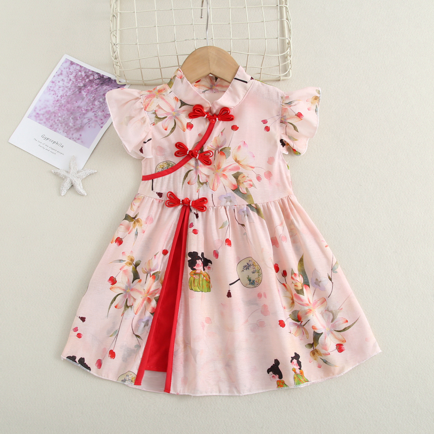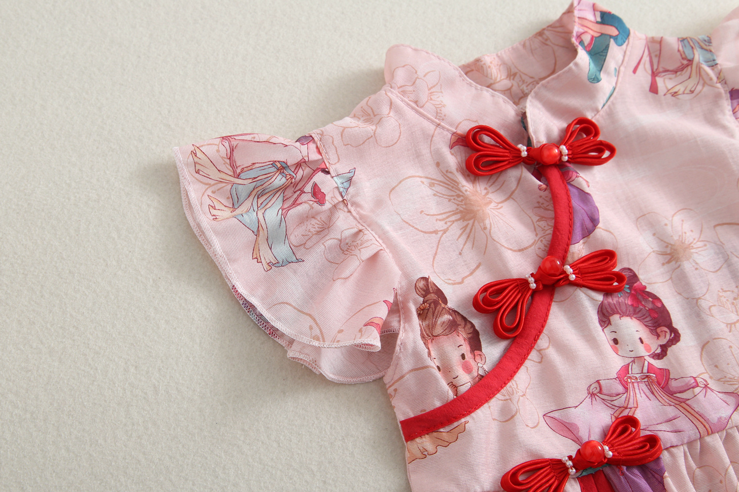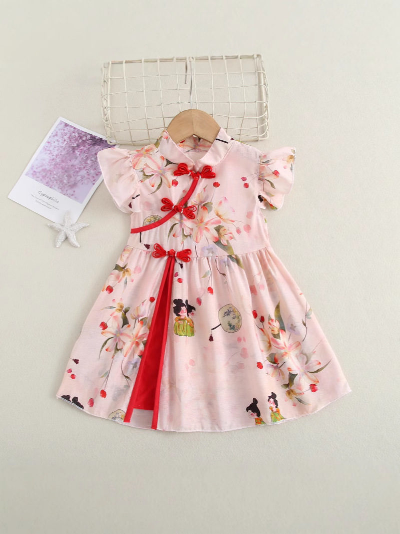 Платье для девочек Cheongsam Летний новый стиль девушки мультфильм платье принцессы с принтом детский национальный стиль шоу юбка