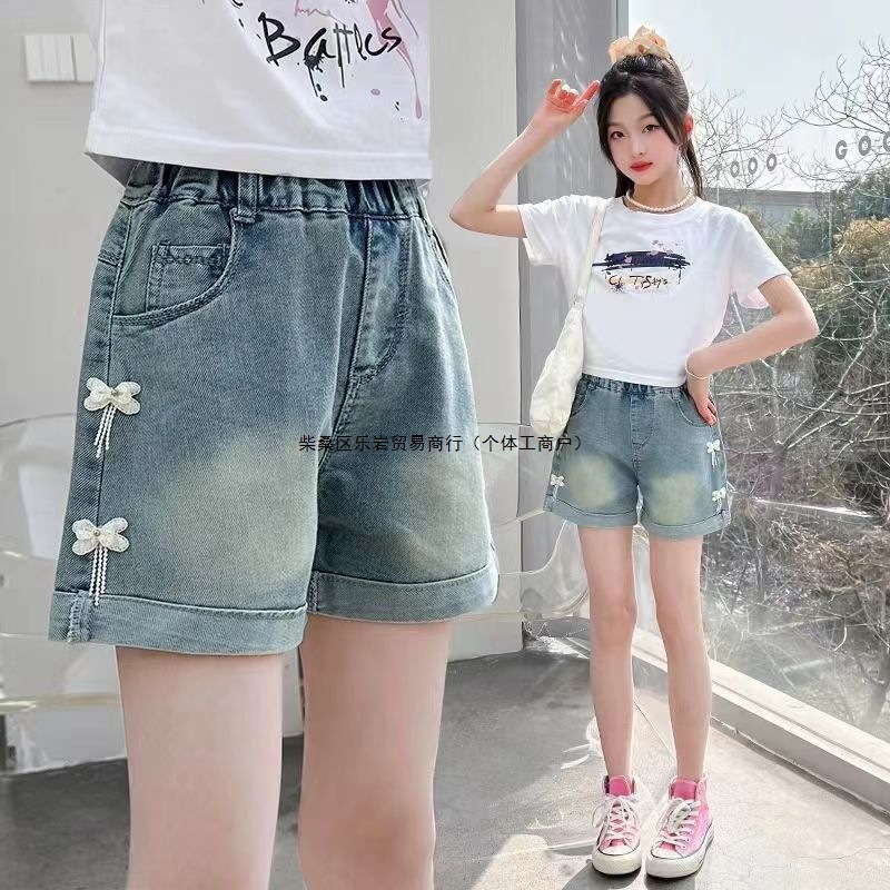Джинсовые шорты для девочек корейская версия с высокой талией свободные шорты пять новых летних тонких больших девочек оптом
