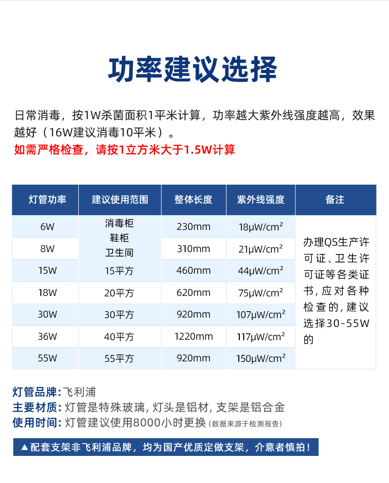 2、功率6W、8W、的灯管产地为中国,36W有国产和进口可以留言。其他功率的灯管产地为波兰。