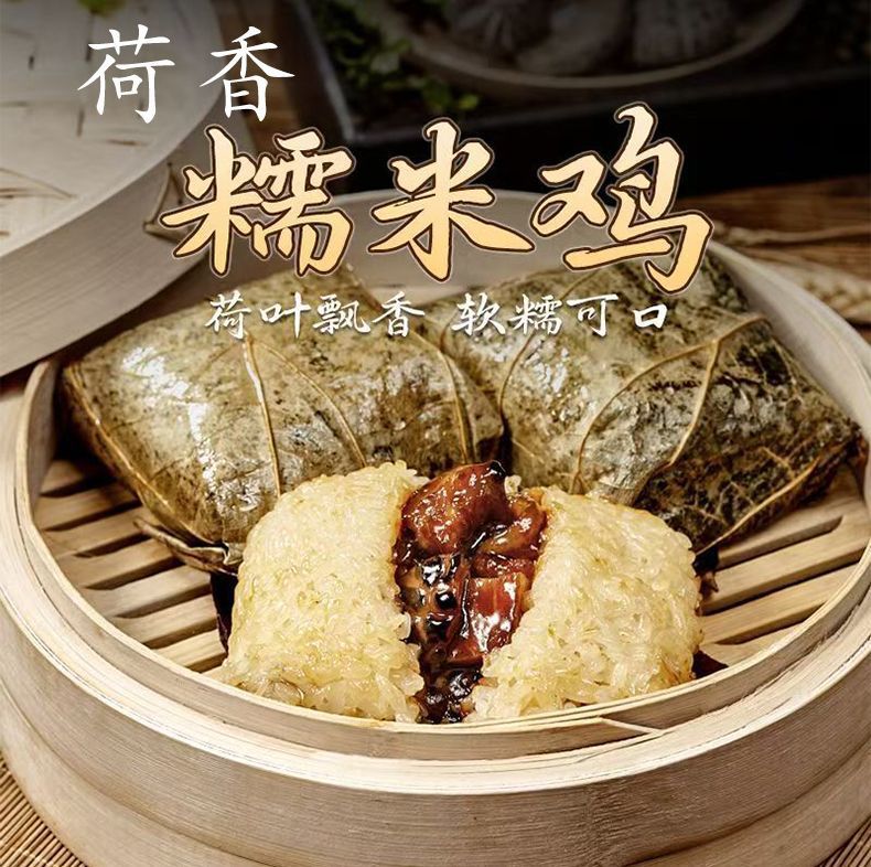 Индивидуально приготовленная курица с сушеной кальмаровой колбасой, яичным желтком и листьями лотоса, а также клейким рисом, в стиле кантонских димсамов из чайного дома, полуфабрикат для оптовой продажи с бесплатной доставкой.