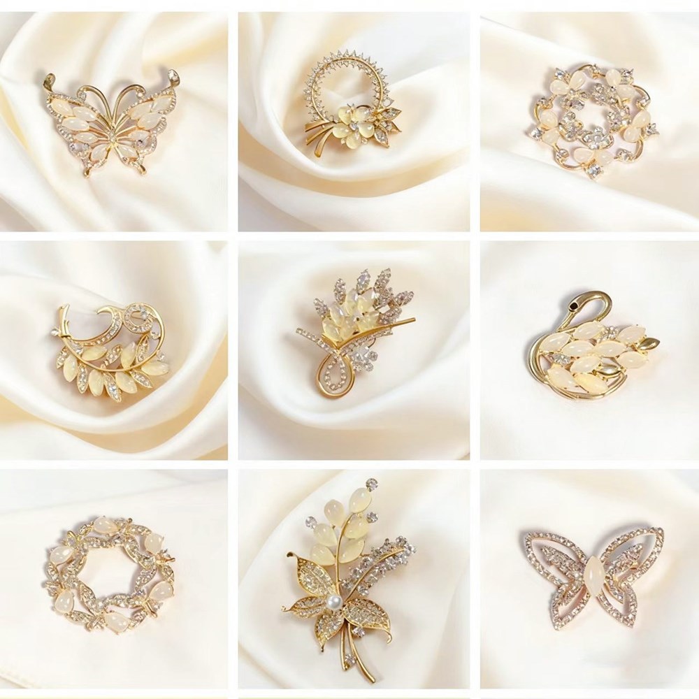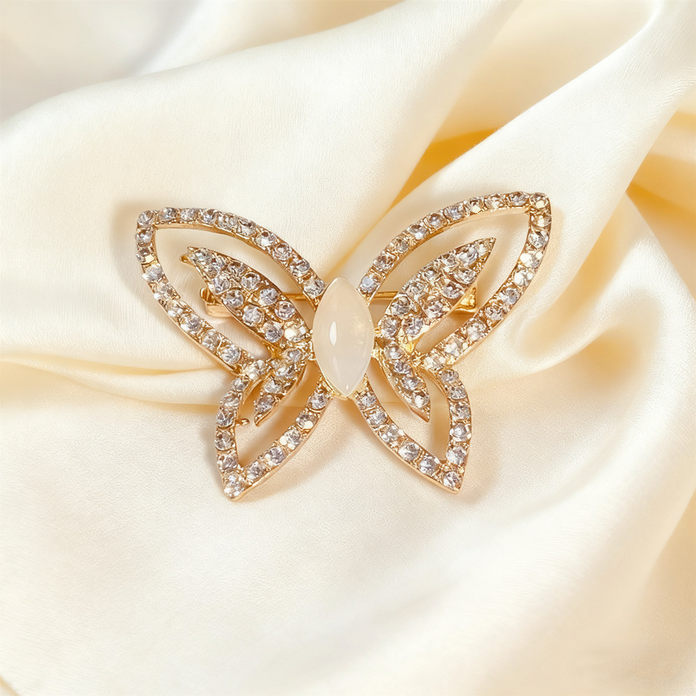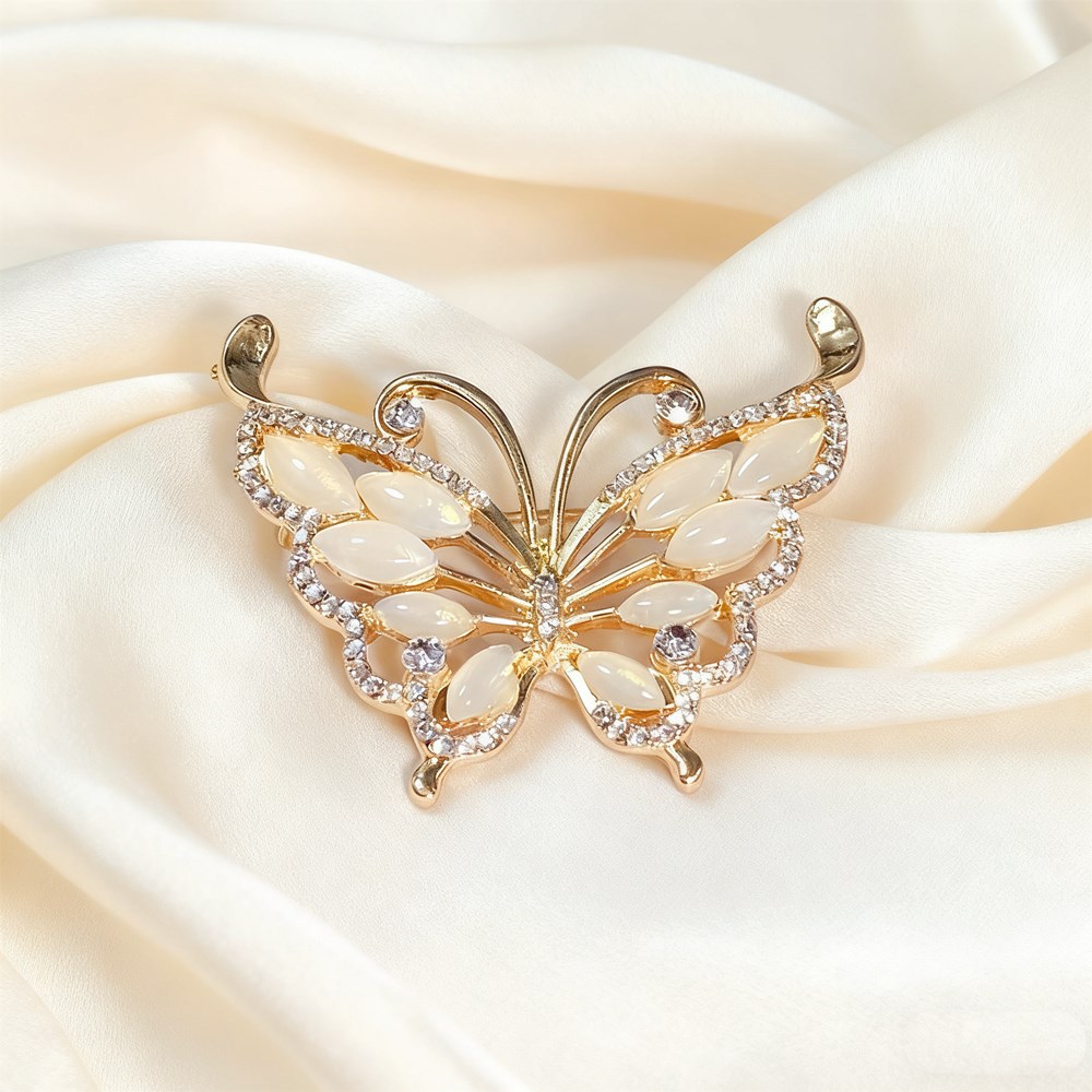 Винтажная брошь в стиле high-end с камнем «кошачий глаз», с дизайном в виде бабочки и цветов, изысканная брошь из сплава, инкрустированная бриллиантами, универсальная и с надежной фиксацией.