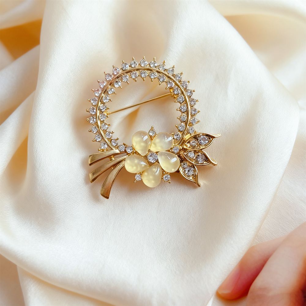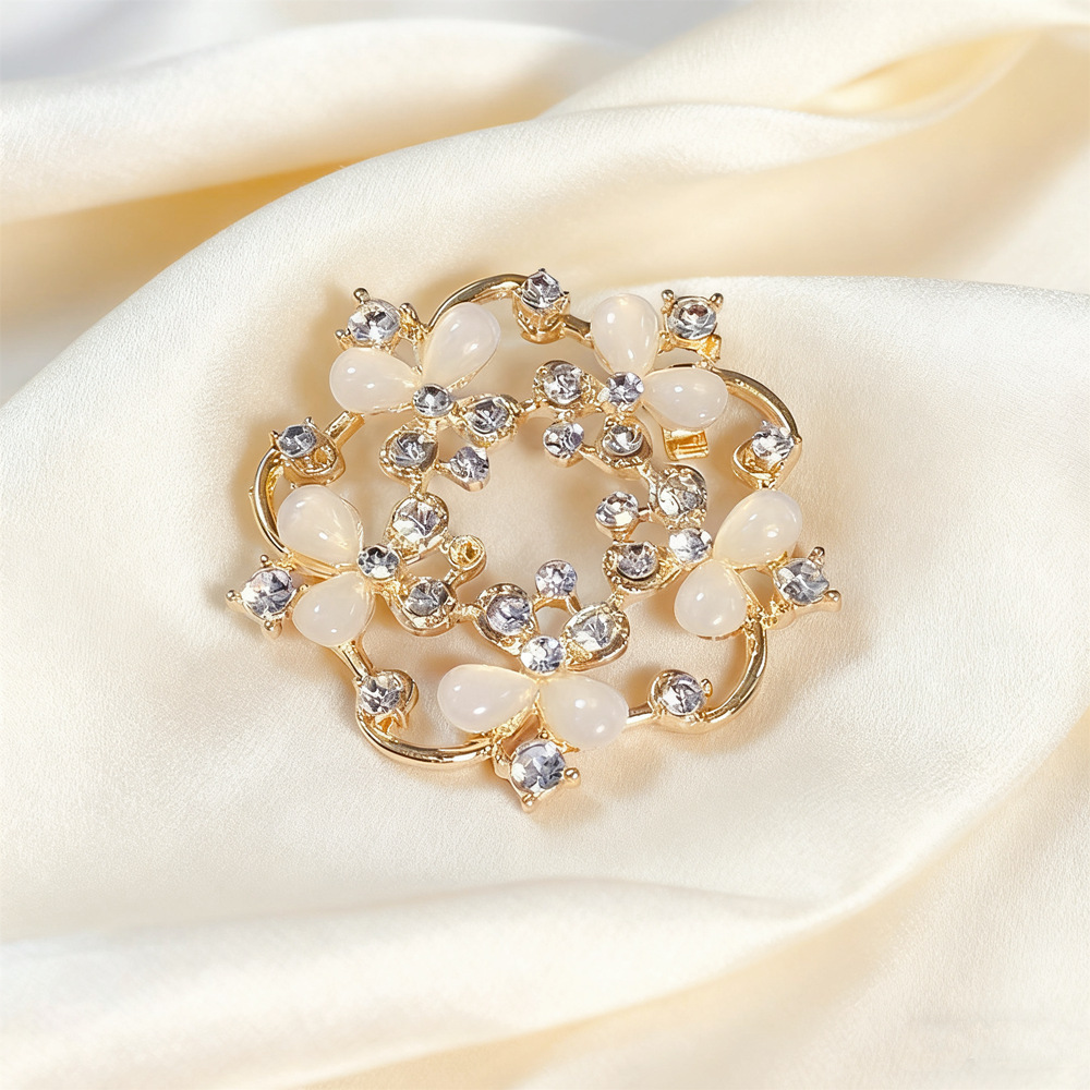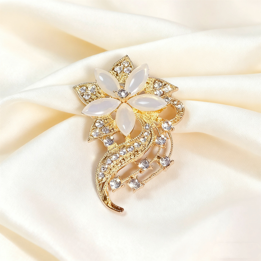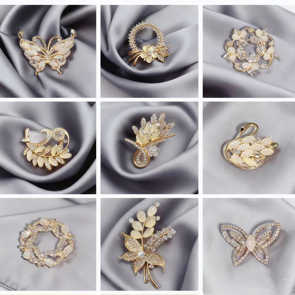 Винтажная брошь в стиле high-end с камнем «кошачий глаз», с дизайном в виде бабочки и цветов, изысканная брошь из сплава, инкрустированная бриллиантами, универсальная и с надежной фиксацией.