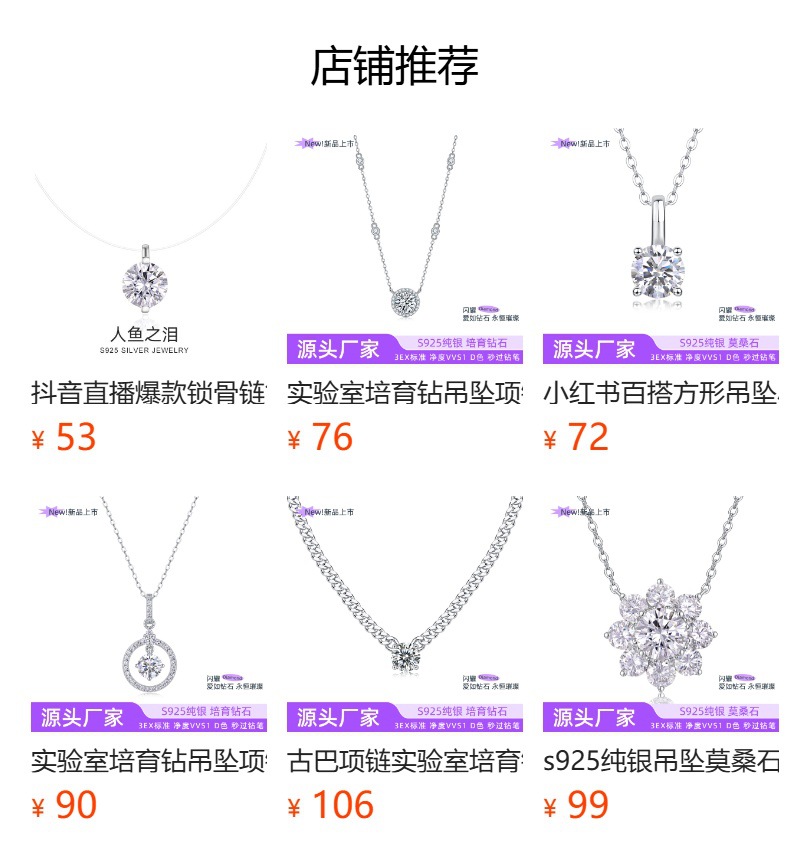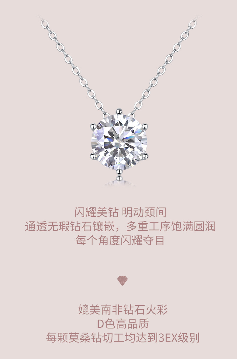 Хит продаж Xiaohongshu: кулон из муассанита с простым креплением на шесть крапанов, подвеска из серебра S925, ожерелье на ключицу, ювелирные аксессуары, дропшиппинг