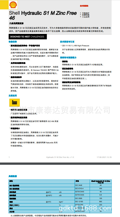Shell Heidley Industrial Безсерый гидравлический масляный S1 M Безцинковый 46 68
