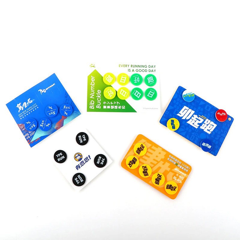 Застежка-зажим для беговых номеров на марафонских забегах, оптом от производителя, спортивная, тонкая, специальная, 2-в-1.
