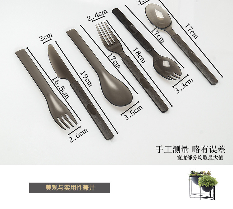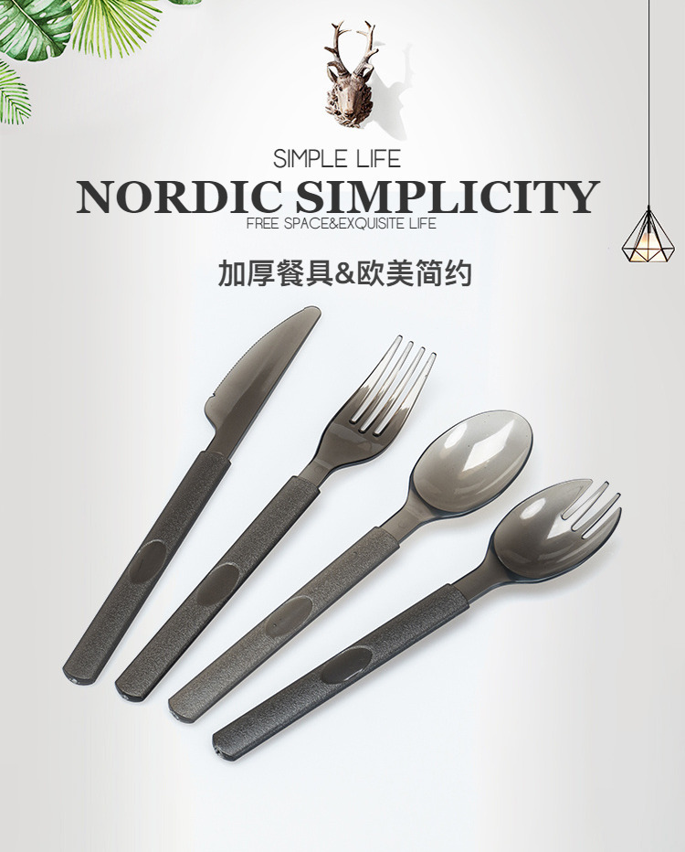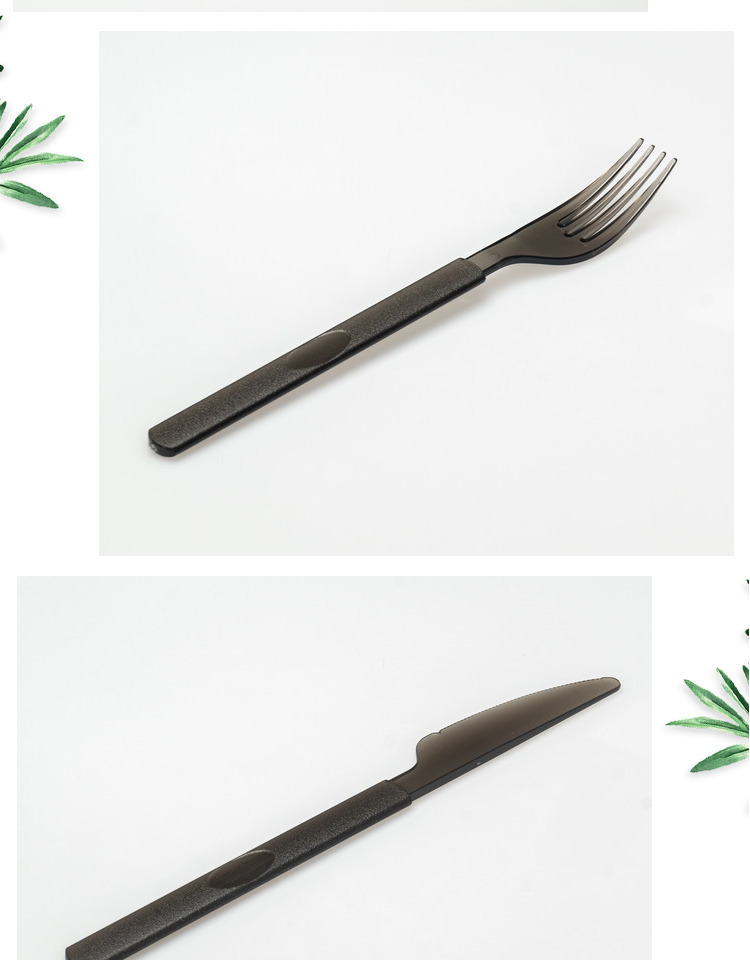Одноразовые пластиковые черный нож и вилка вилка посуда матовая длинная ручка утолщенные полупрозрачные независимые ложки по умолчанию B &