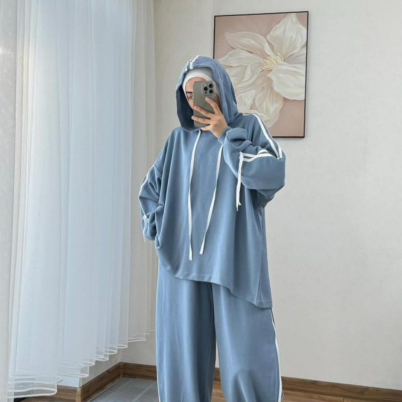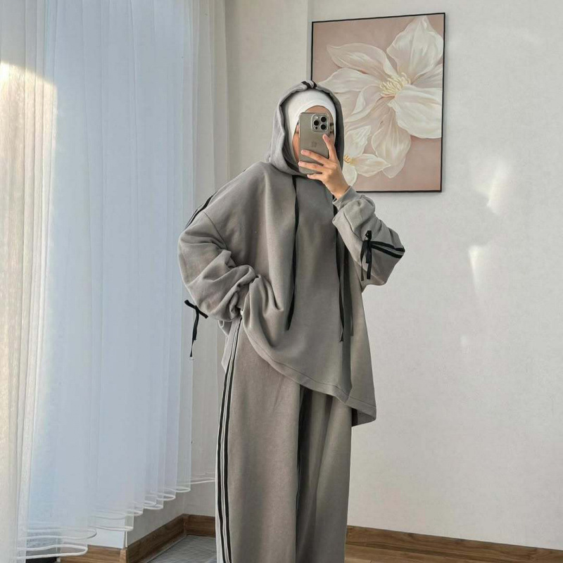 Новая весна 2025 года трансграничная ближневосточная внешняя торговля женская одежда с длинными рукавами с капюшоном широкие брюки темперамент пригородного модного набора