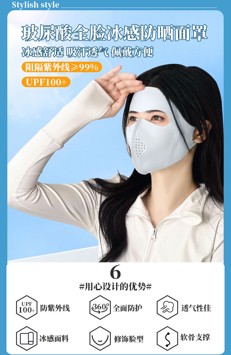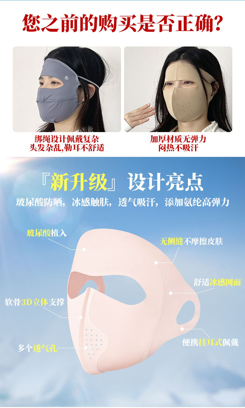 Новая солнцезащитная маска для лица Kini для женского летнего анти-ультрафиолетового льда тонкий и дышащий для защиты глаз тонкий