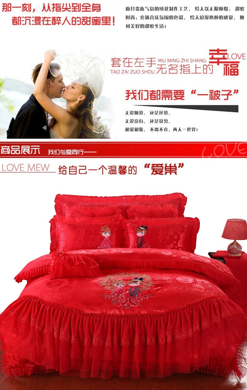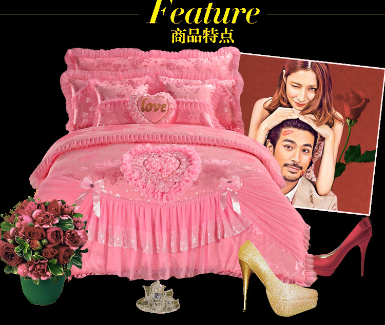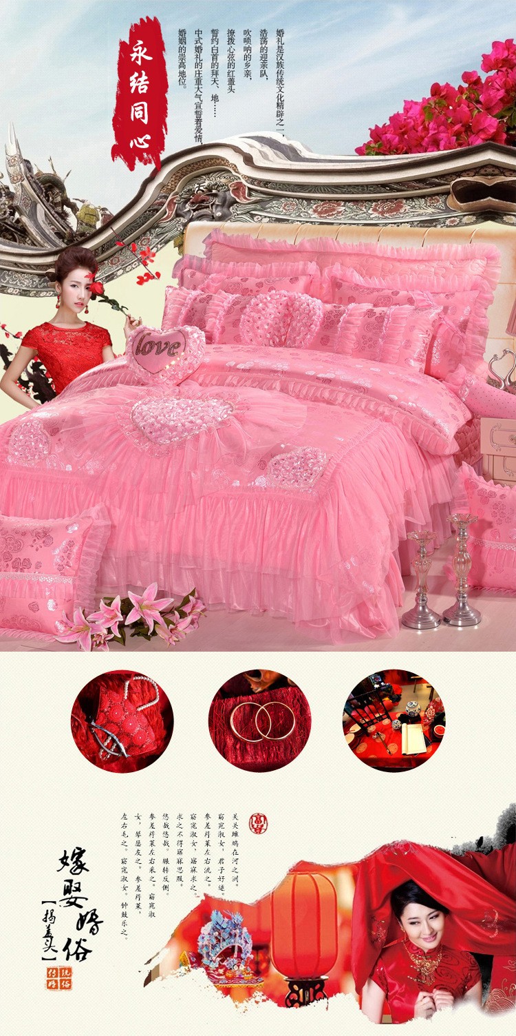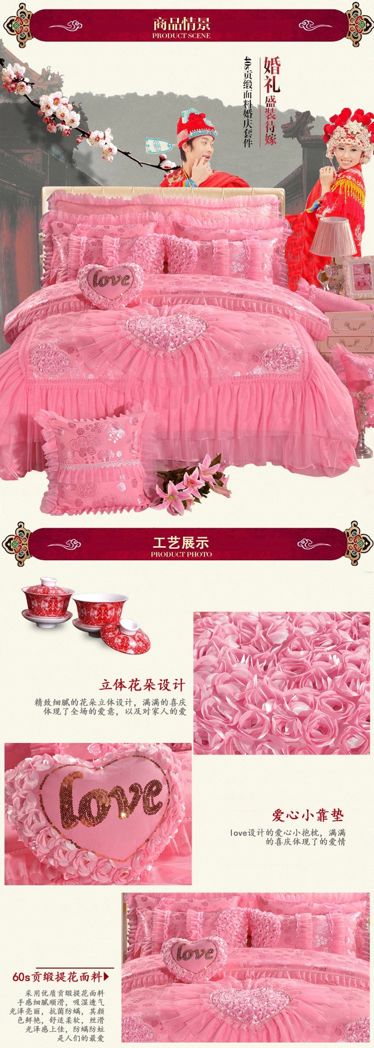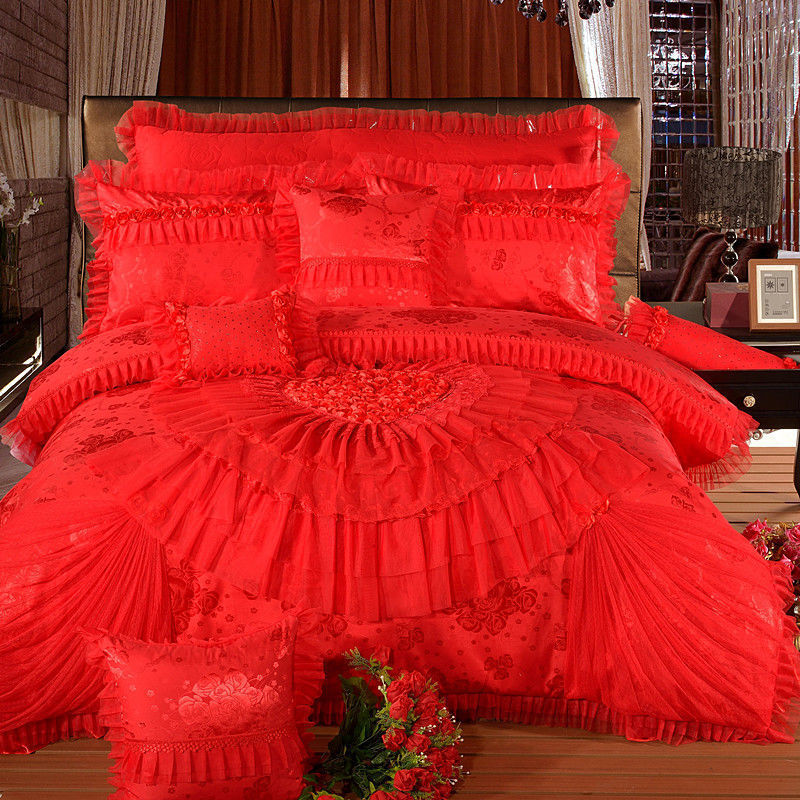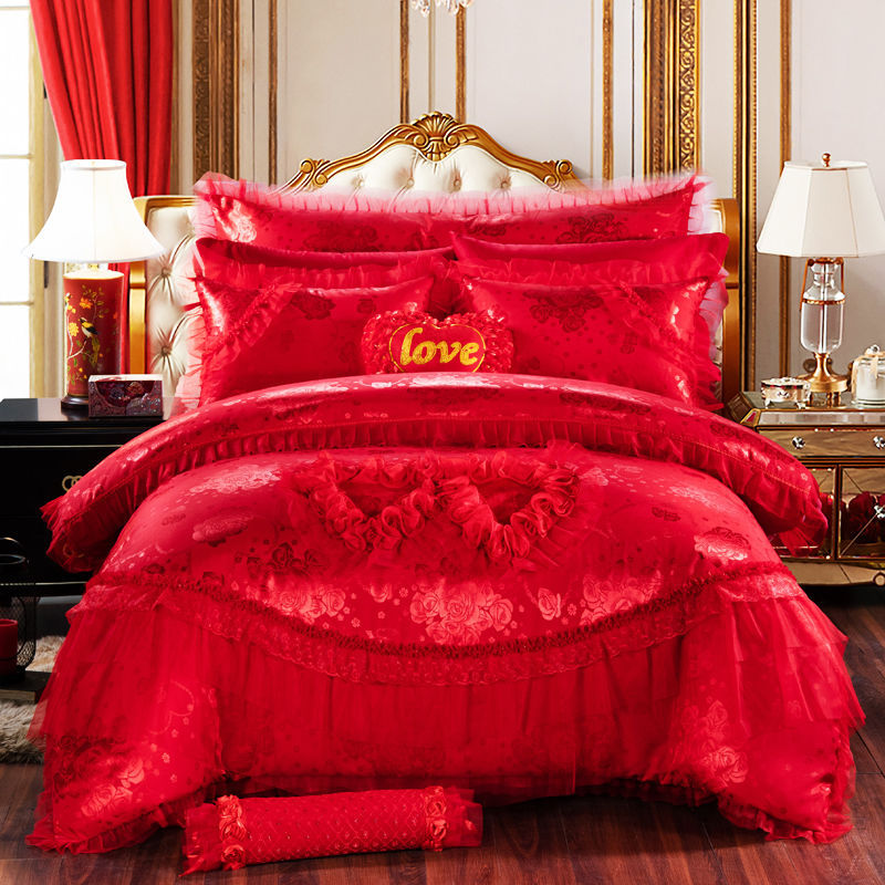Корейская версия свадьбы большой красный набор из четырех частей, атласный жаккардовый свадебный подарок кружевной хлопчатобумажный простыни принцессы розовое нефритовое одеяло