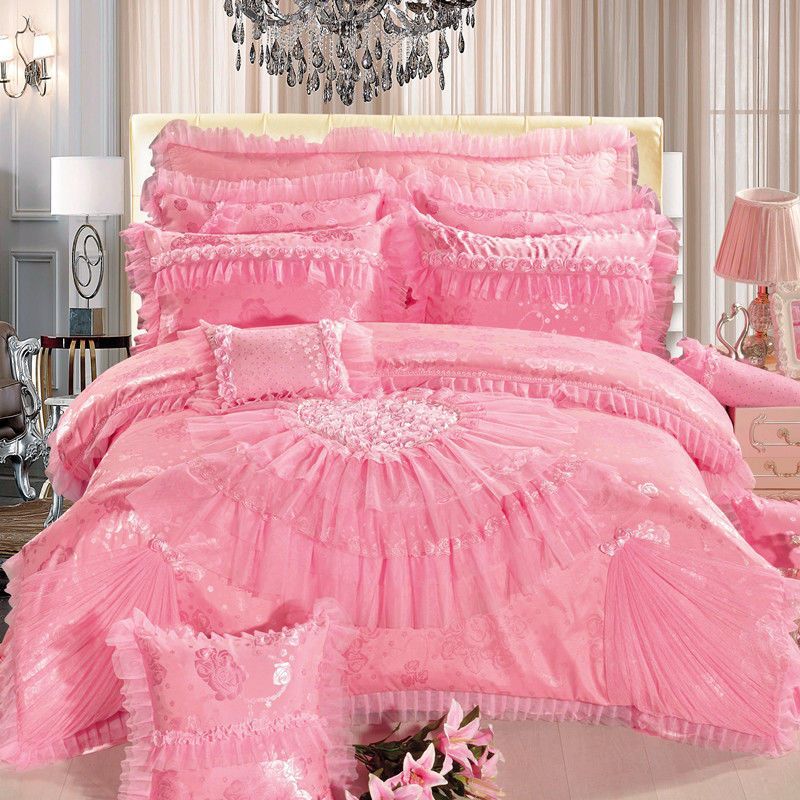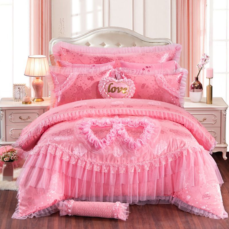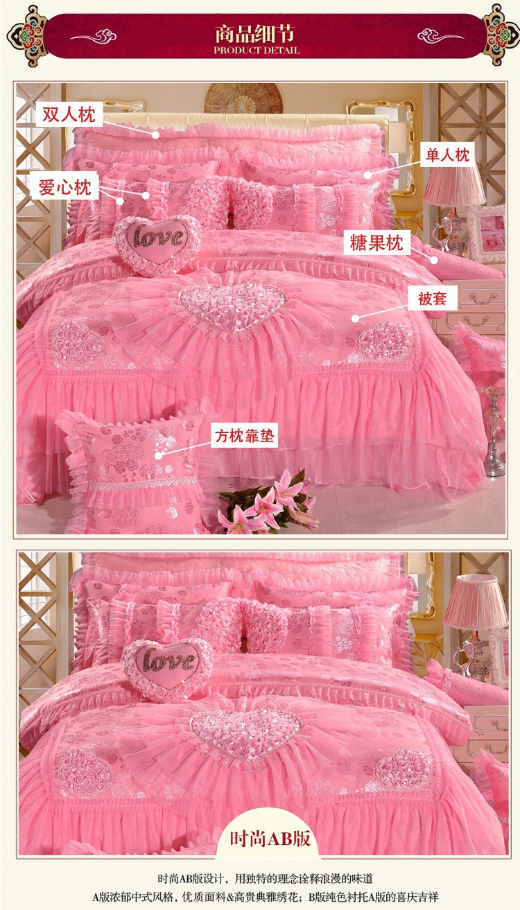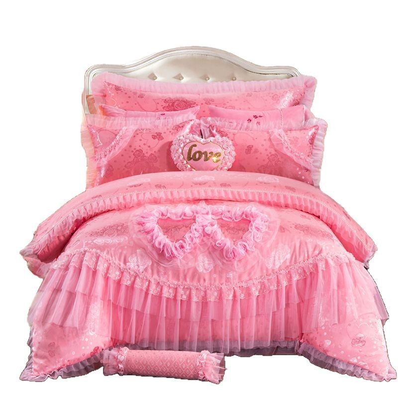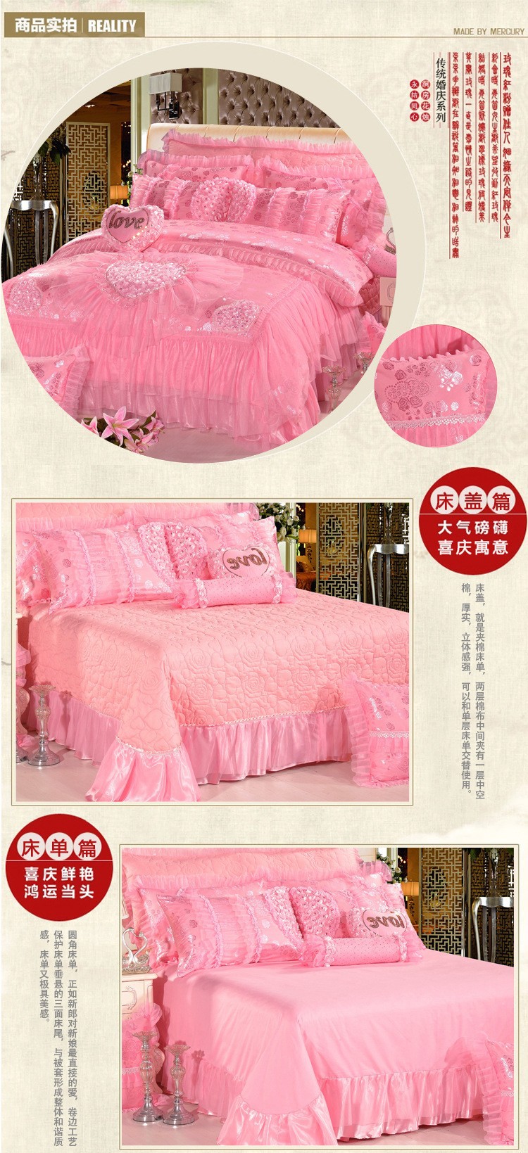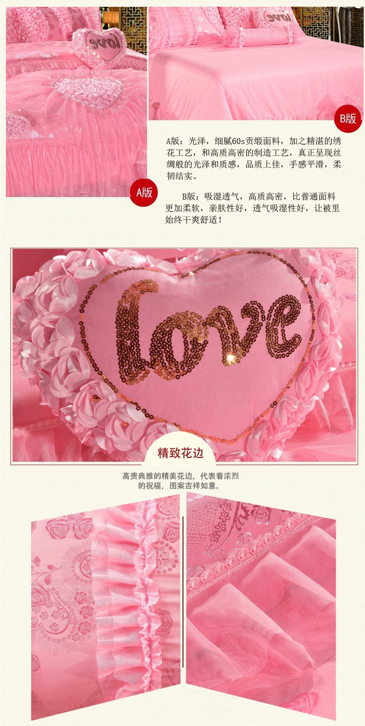 Корейская версия свадьбы большой красный набор из четырех частей, атласный жаккардовый свадебный подарок кружевной хлопчатобумажный простыни принцессы розовое нефритовое одеяло