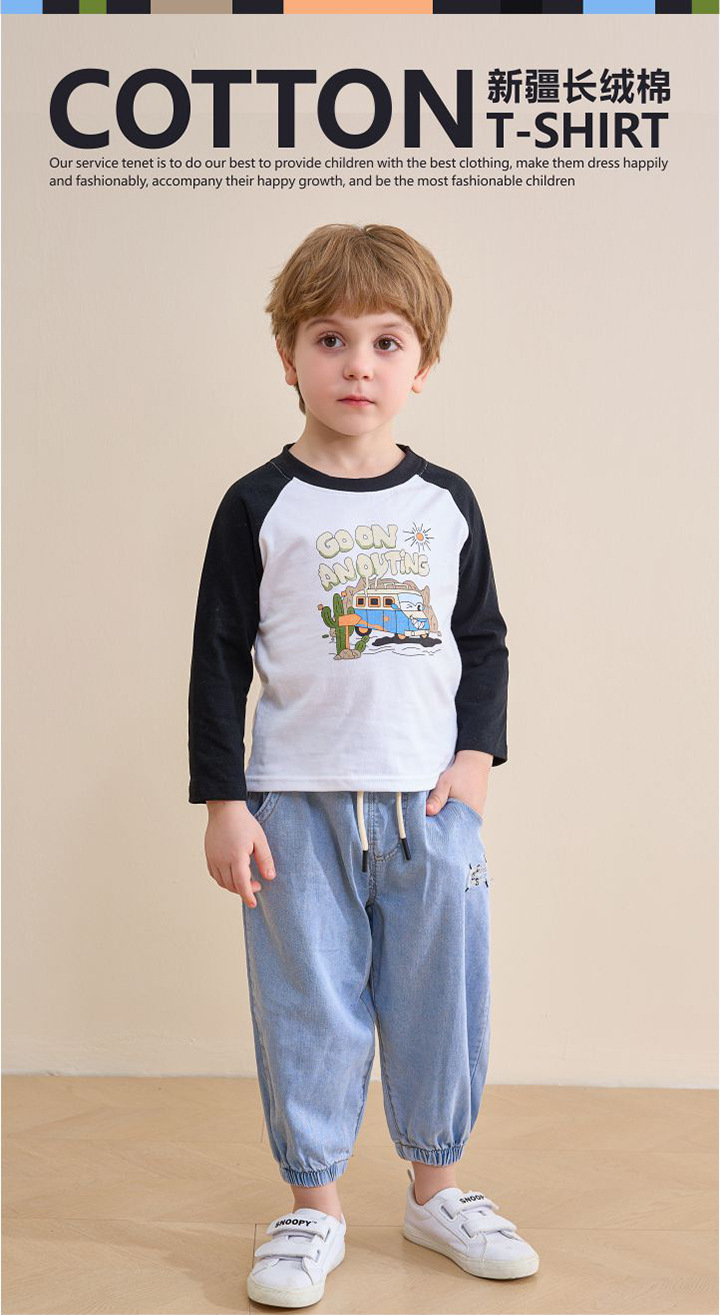 Детская футболка, 100% хлопок, класс А, реглан, толстовка из плотного материала 220 г, футболка с длинным рукавом из чистого хлопка, детский топ, плотный хлопок.
