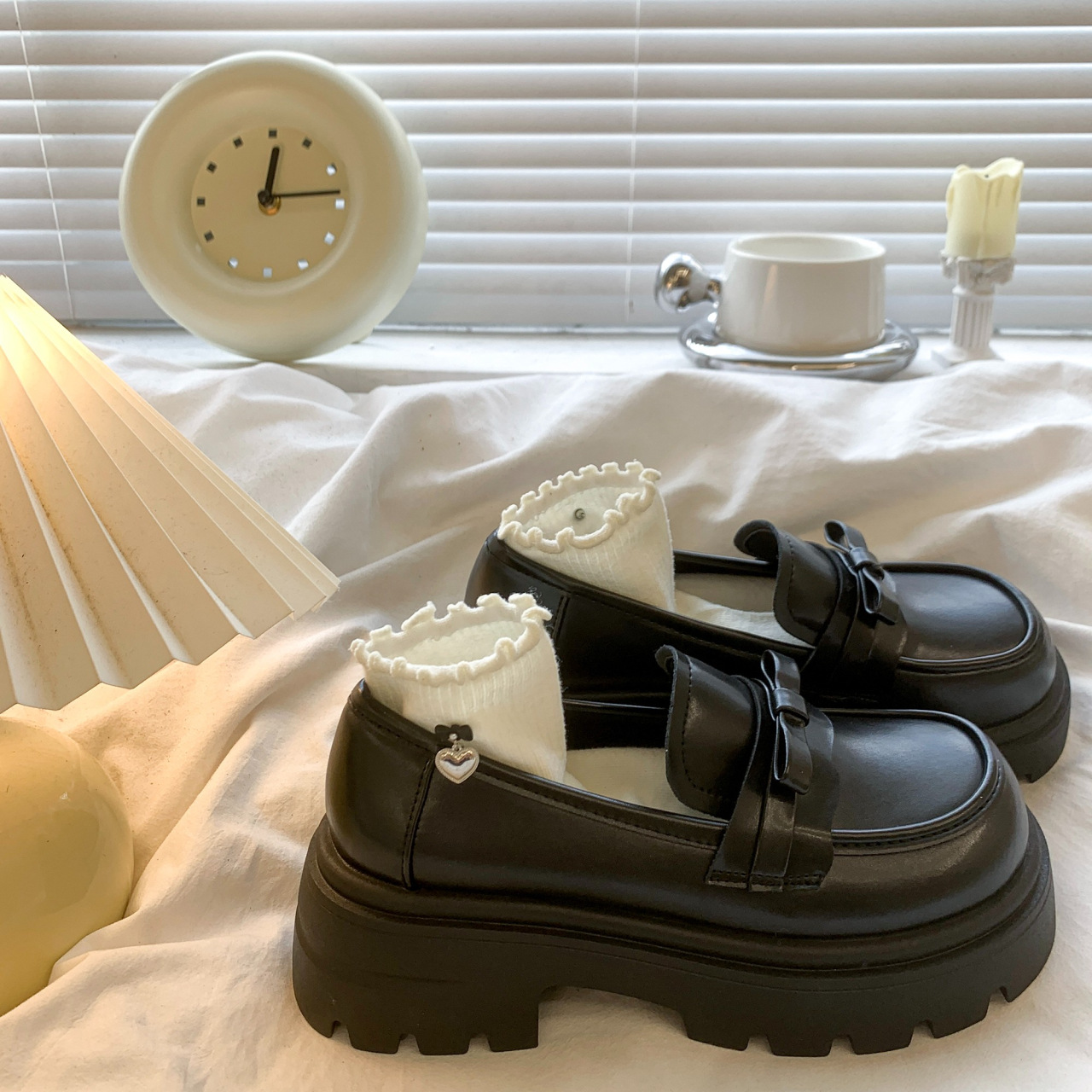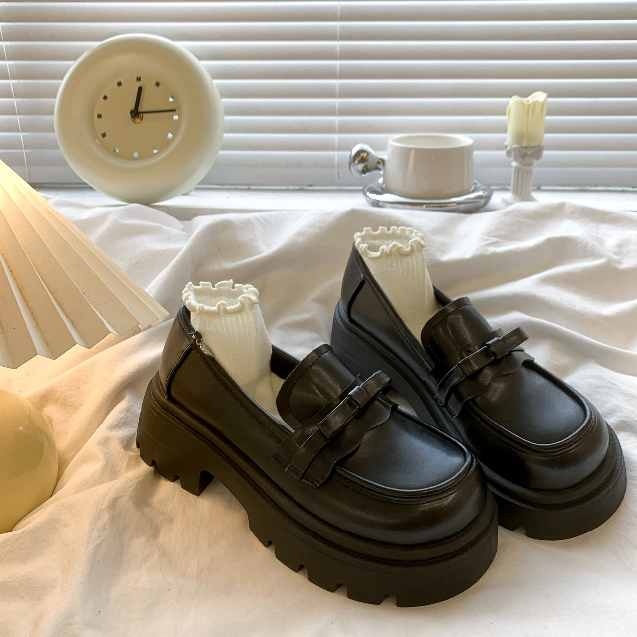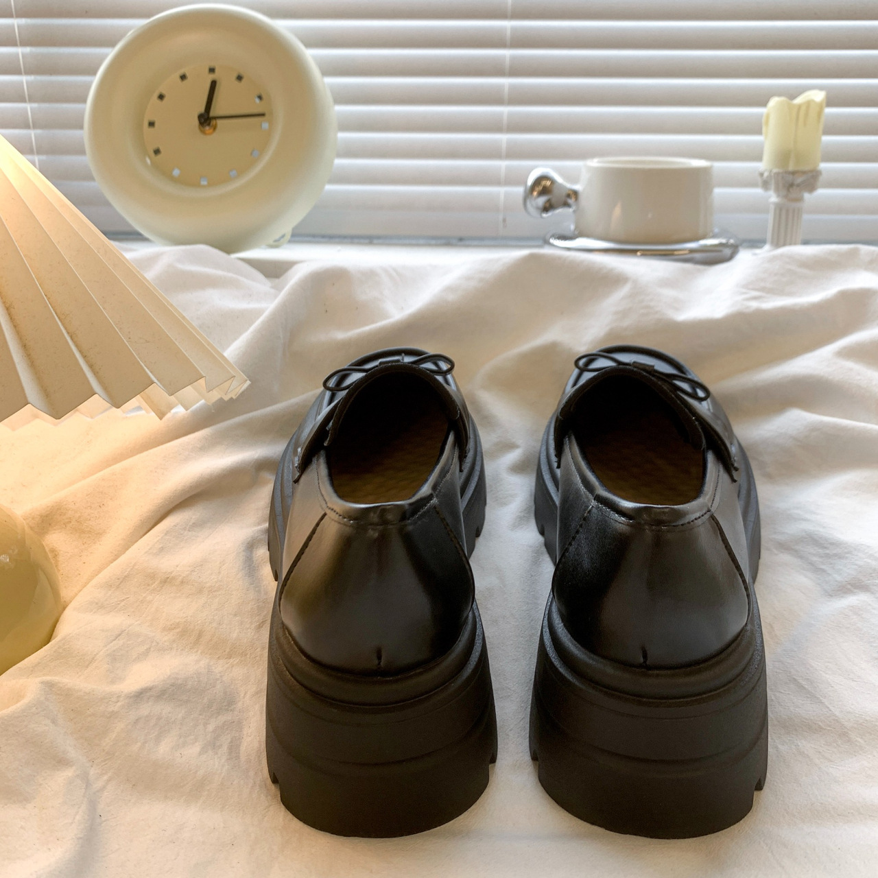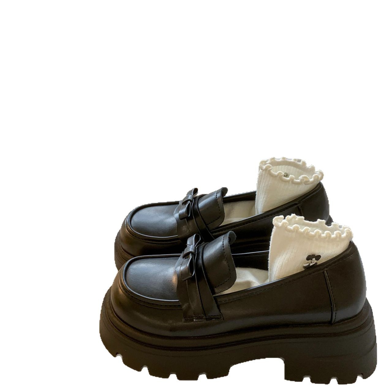 Черный английский стиль толстая подошва, увеличенные одиночные туфли женская весна 2025 новый педаль Lefu маленькие кожаные туфли для женщин