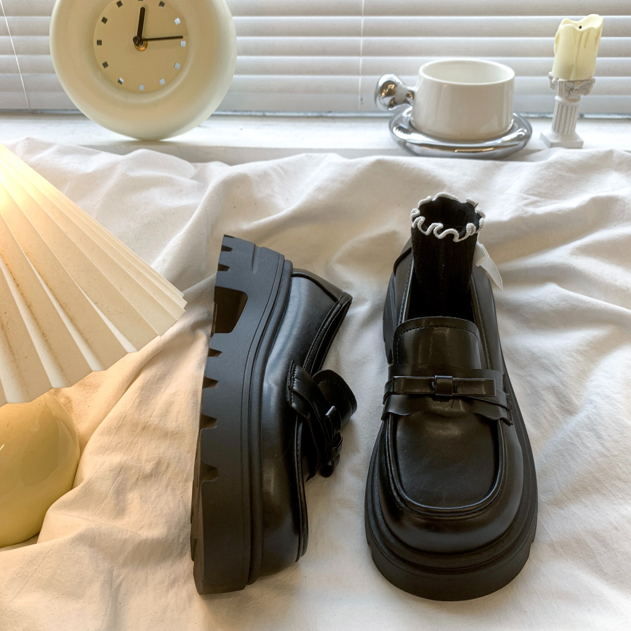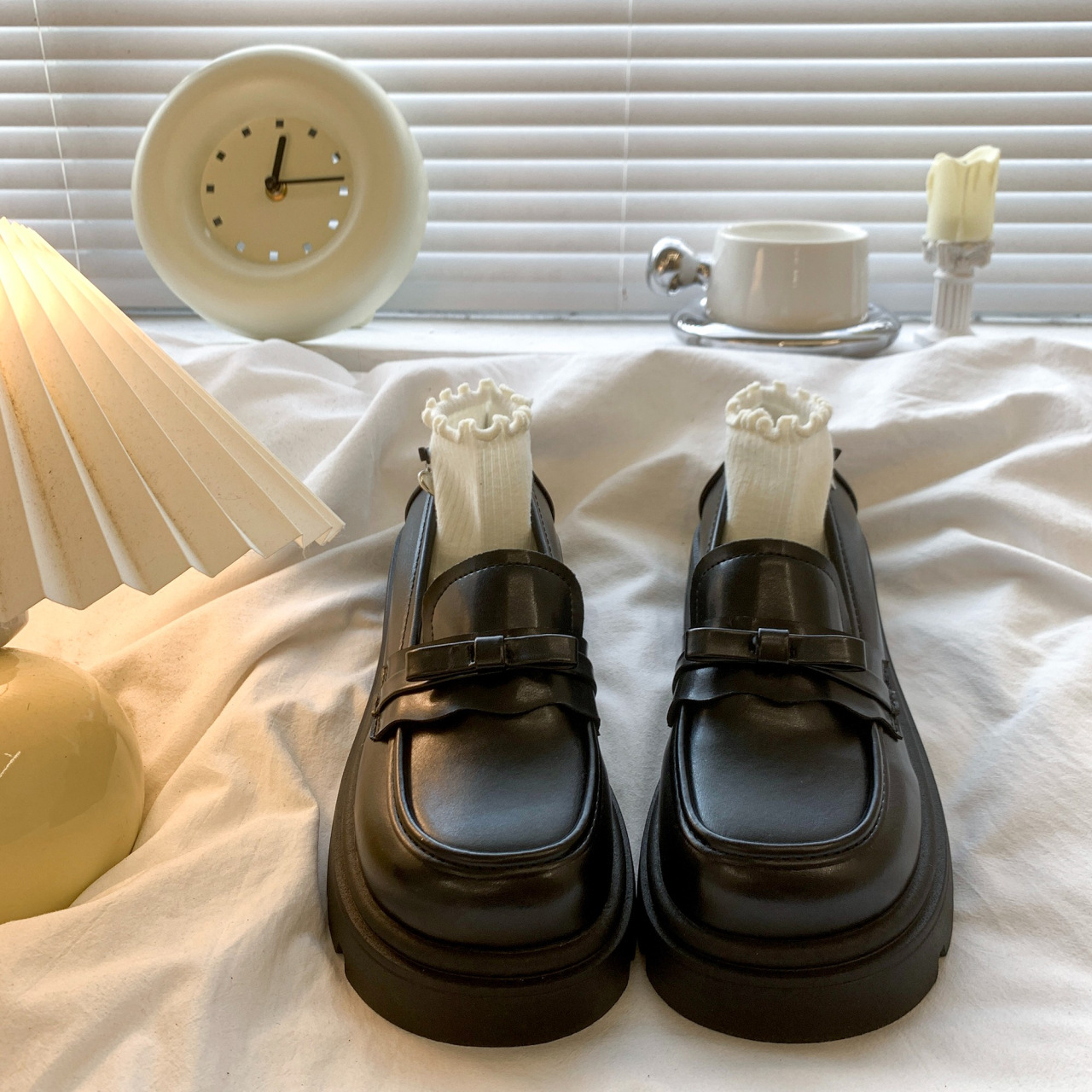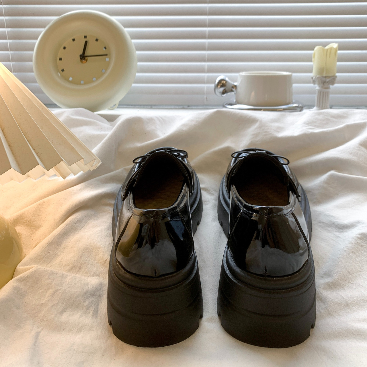 Черный английский стиль толстая подошва, увеличенные одиночные туфли женская весна 2025 новый педаль Lefu маленькие кожаные туфли для женщин