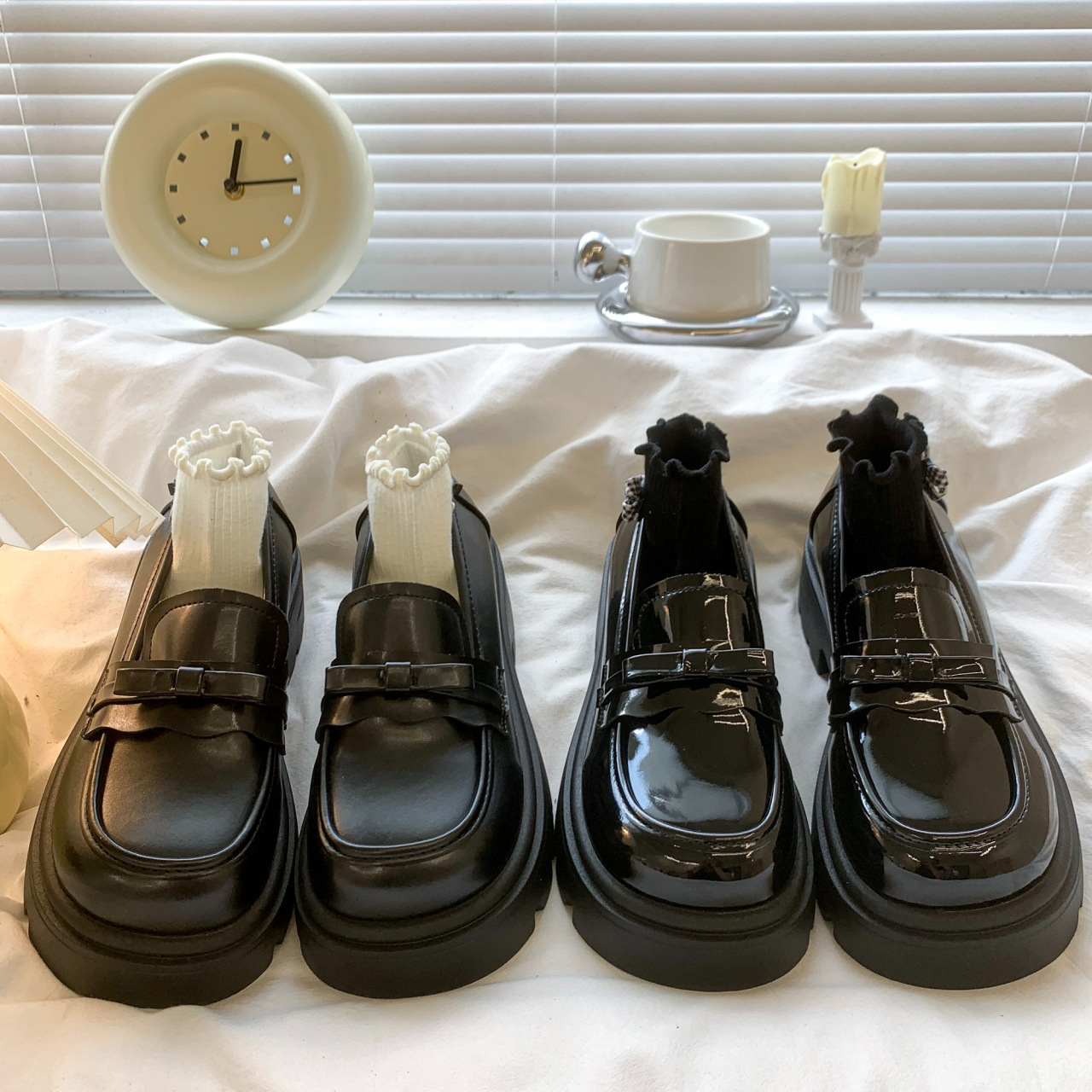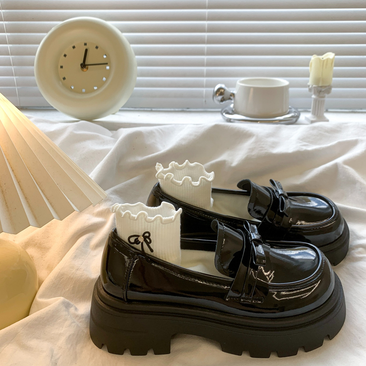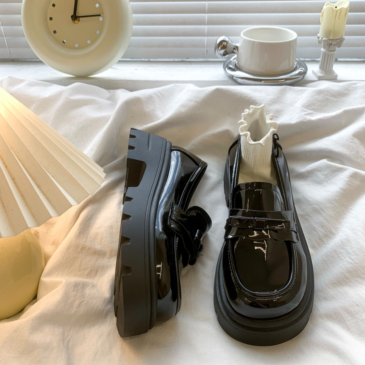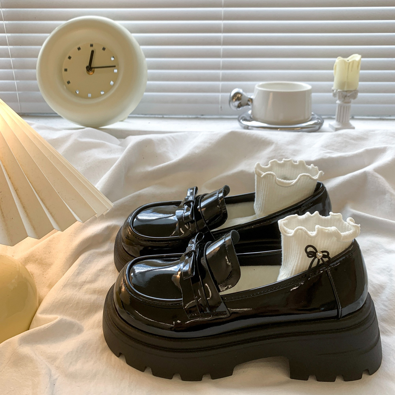 Черный английский стиль толстая подошва, увеличенные одиночные туфли женская весна 2025 новый педаль Lefu маленькие кожаные туфли для женщин