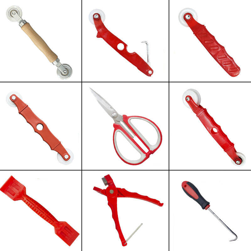 Металлическое колесо с деревянной ручкой.; Обновление двойной головки красного цвета; Модернизированная интегрированная разборка и сборка; красная пластиковая лопатка; Модернизированный крючок; красные ножницы; Набор прижимных колес из шести частей.