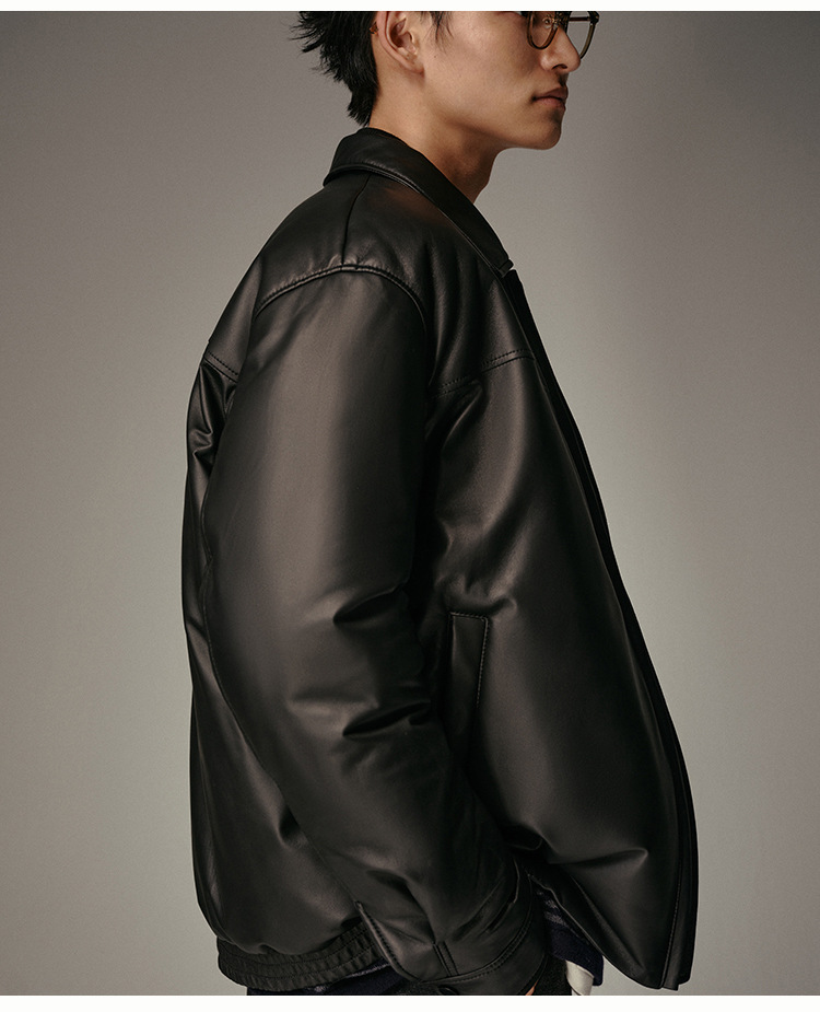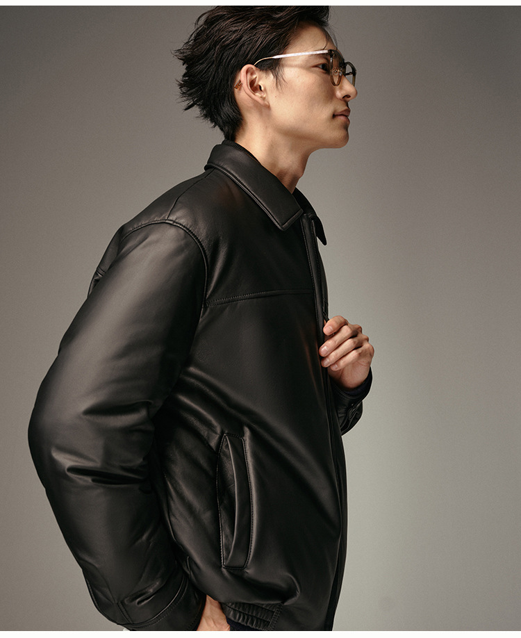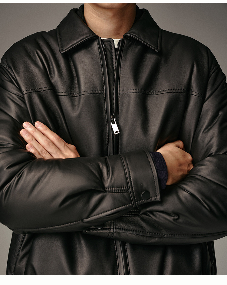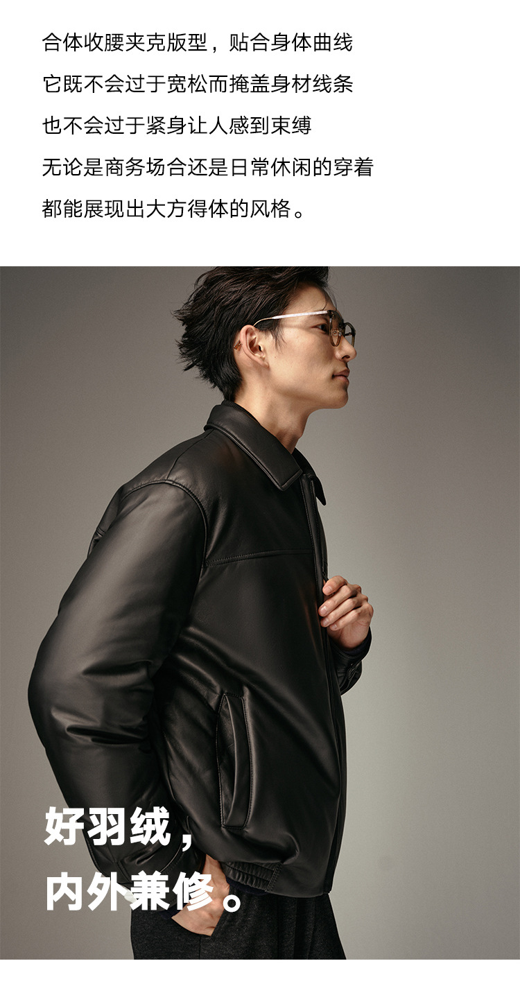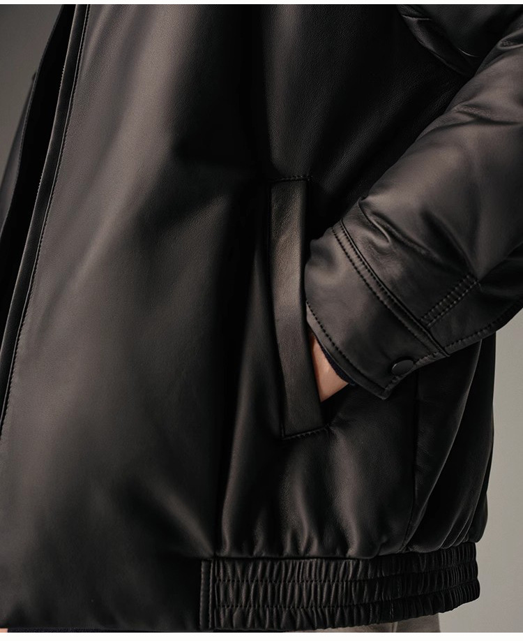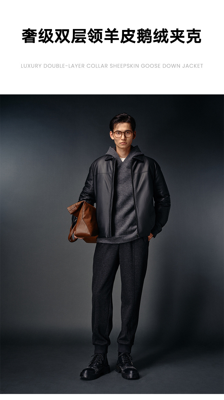Классическая куртка из овчины для мужчин высокого уровня чувство новый повседневный свободный белый гусиный пуховик утолщенный теплый кожаный пуховик