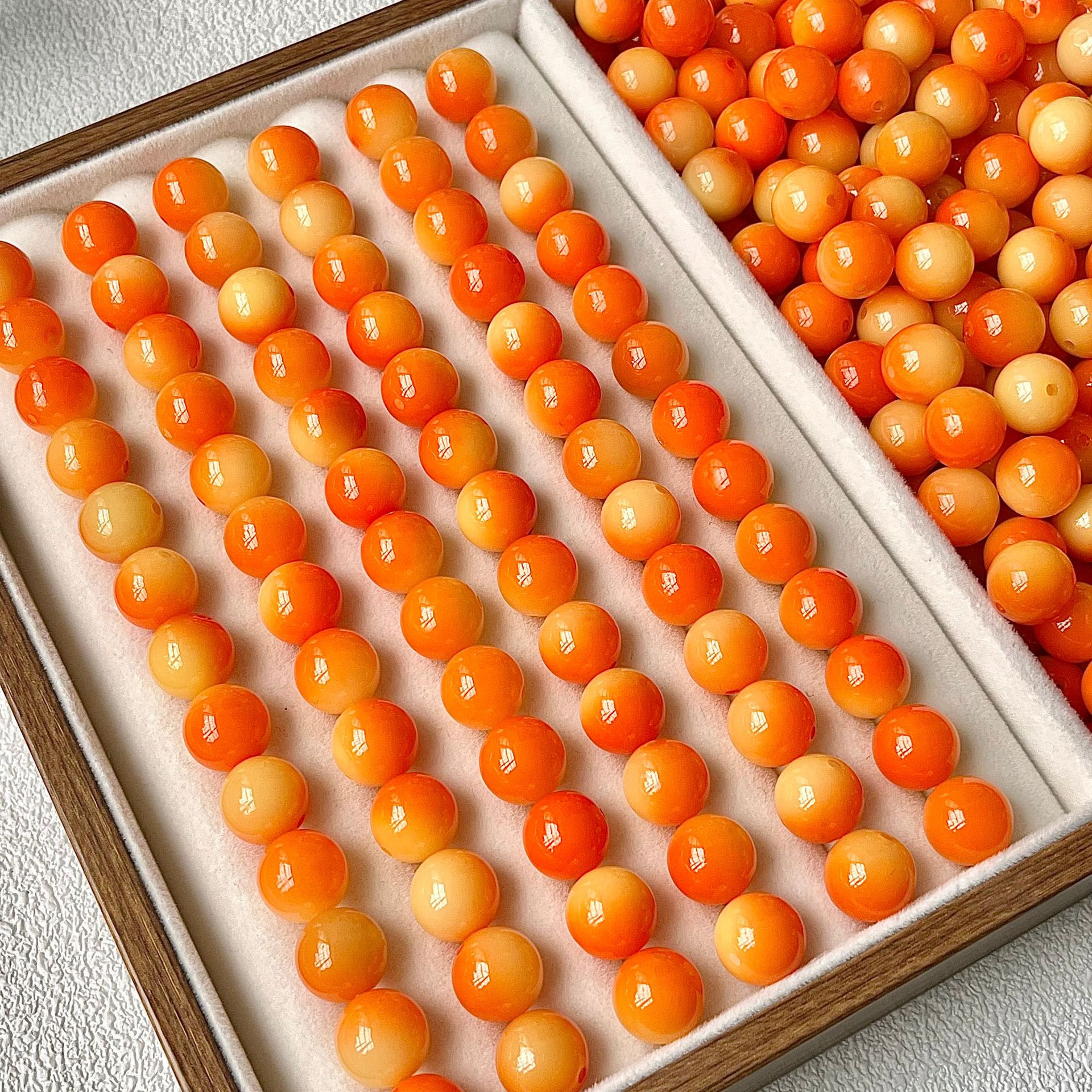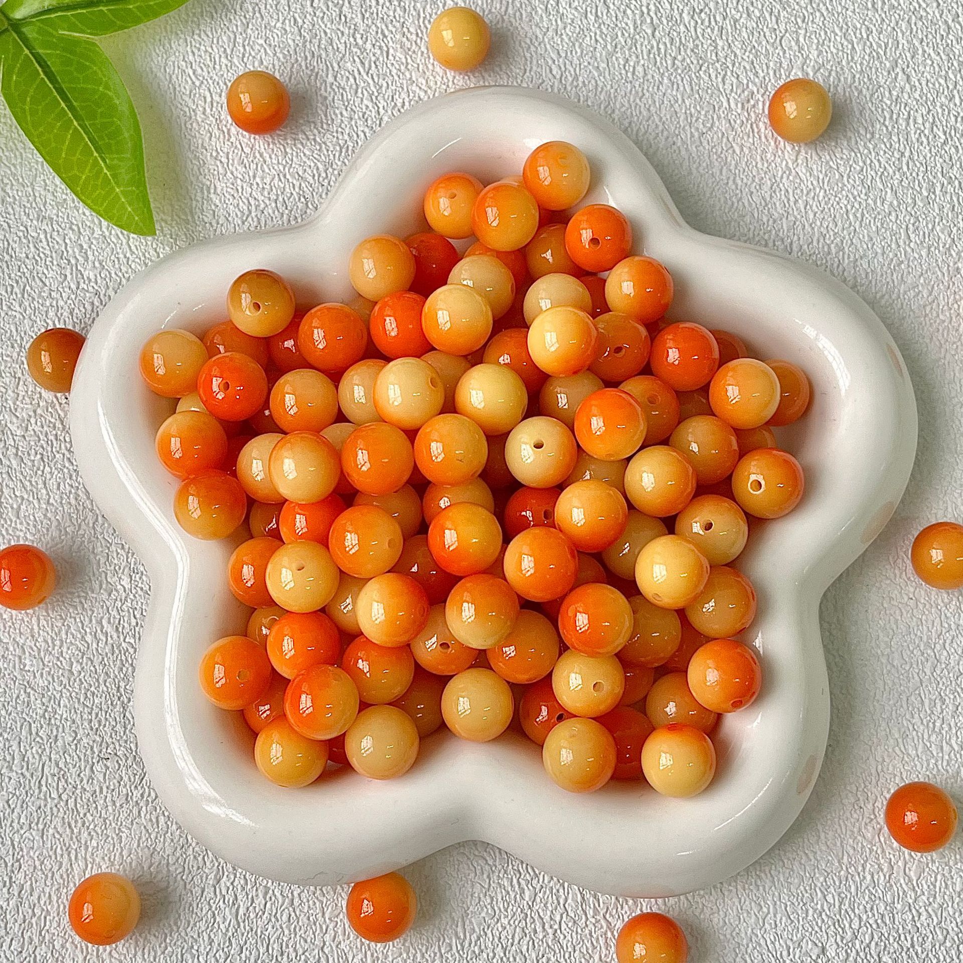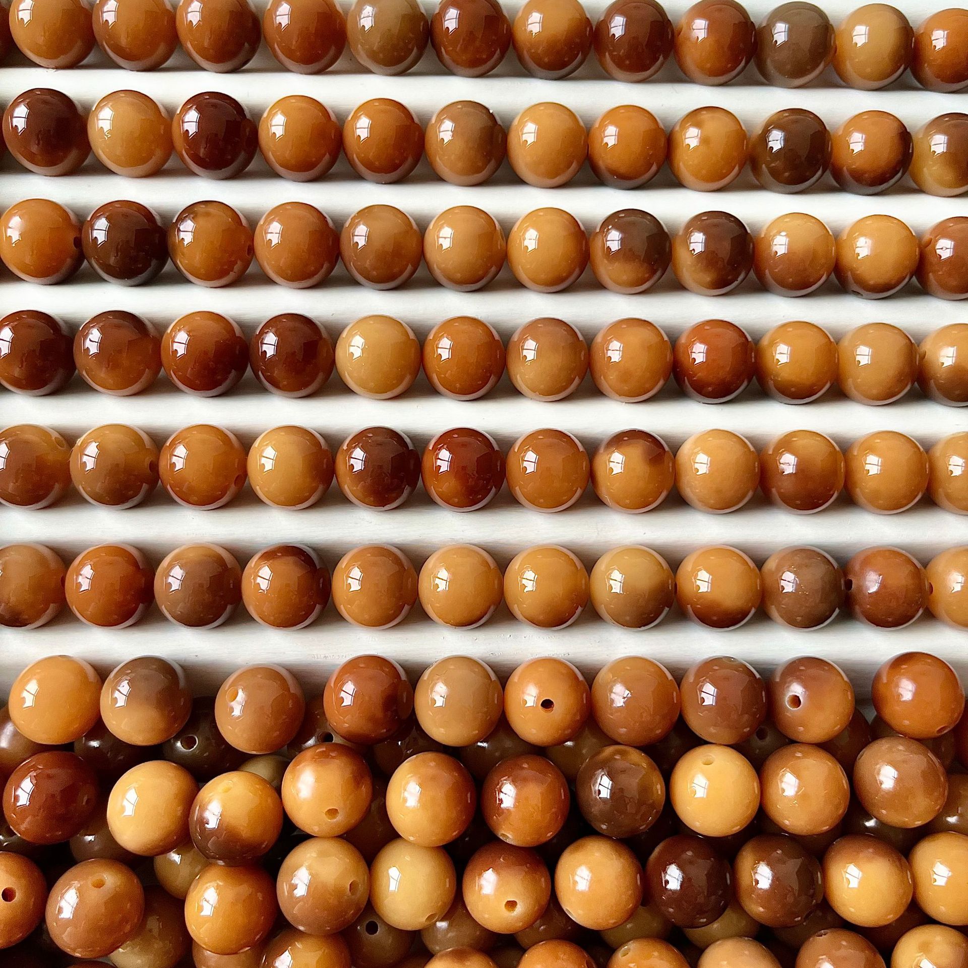 Sunset Orange [Круглые бусины-одинарные]; Сливовый соус с плавающими цветами [Круглые бусины-одиночные]; Карамельный кофе [Круглые бусины-одинарные]; Плавающие цветы Янмэй [круглые бусины-одиночные]; Остров Неба [Круглые бусины-одинарные]