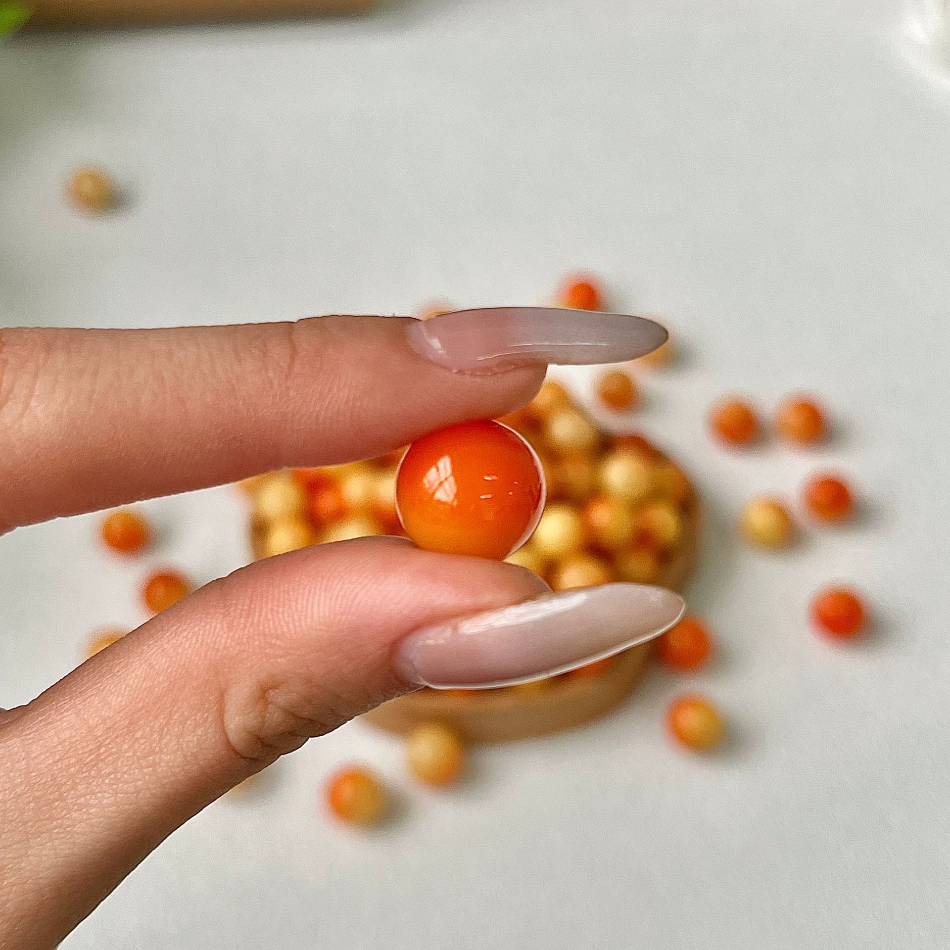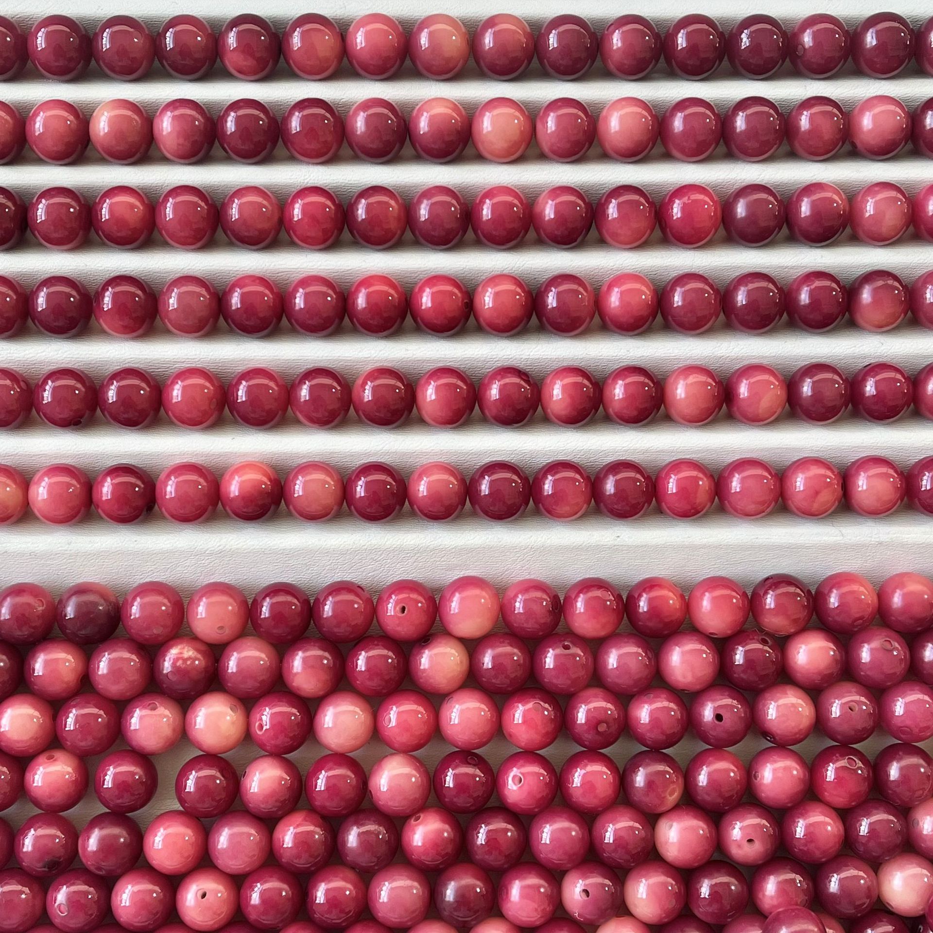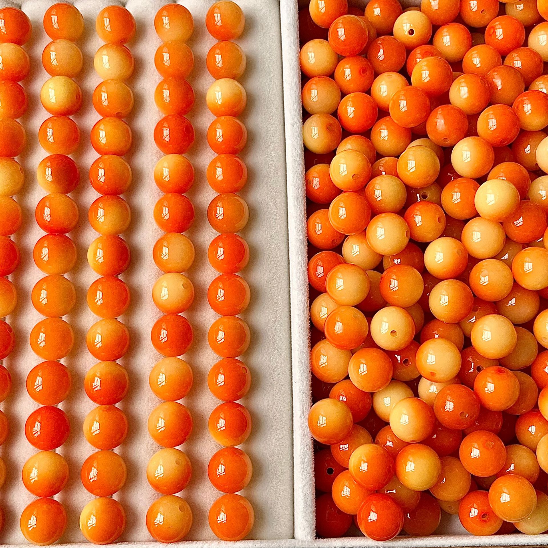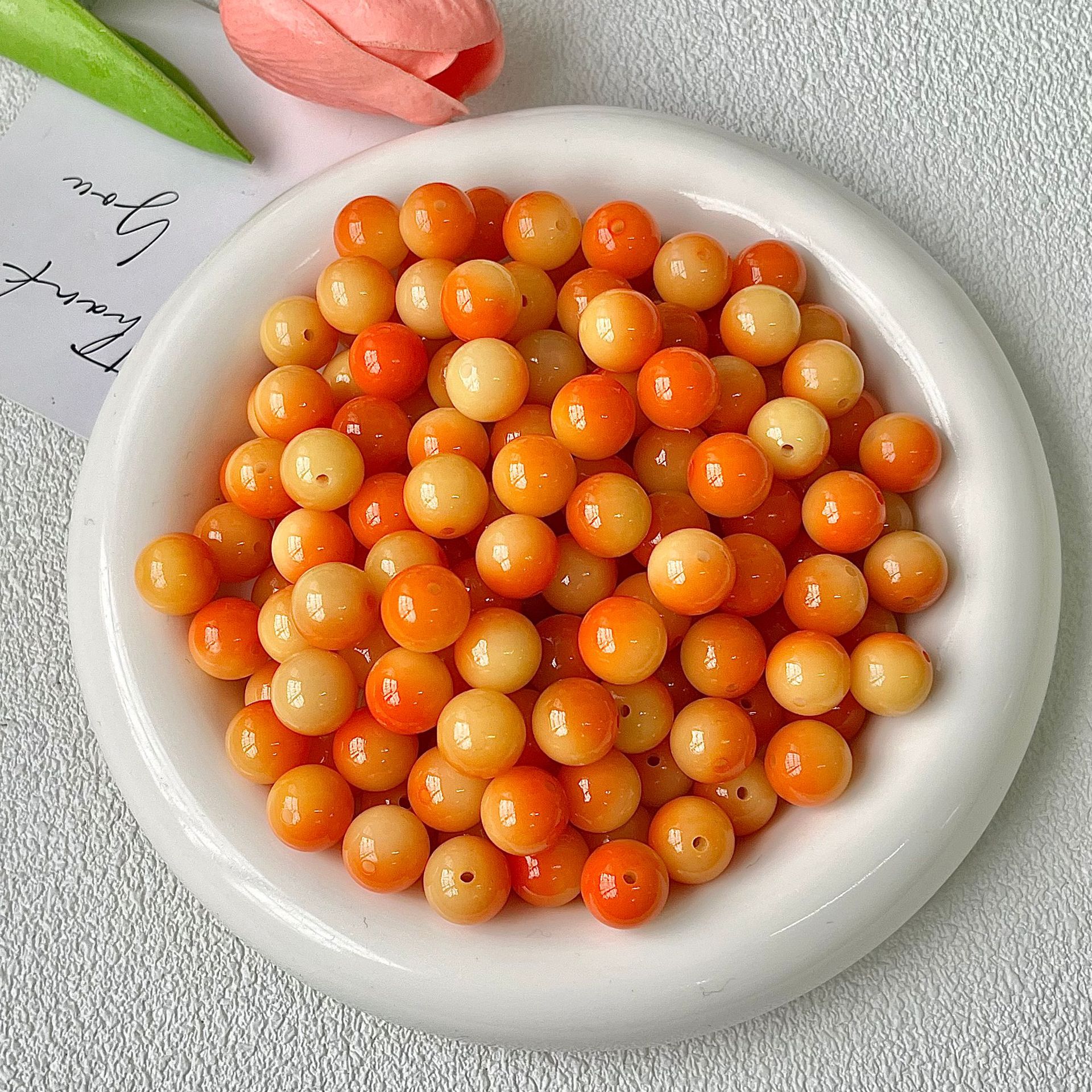 Sunset Orange [Круглые бусины-одинарные]; Сливовый соус с плавающими цветами [Круглые бусины-одиночные]; Карамельный кофе [Круглые бусины-одинарные]; Плавающие цветы Янмэй [круглые бусины-одиночные]; Остров Неба [Круглые бусины-одинарные]