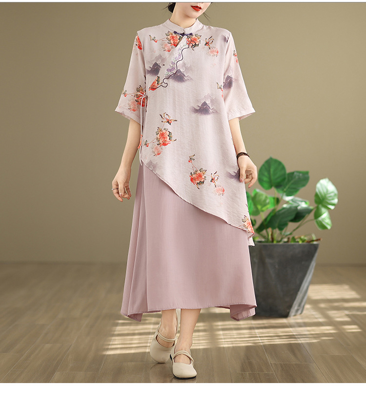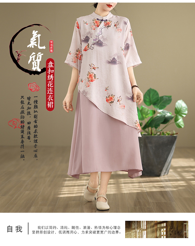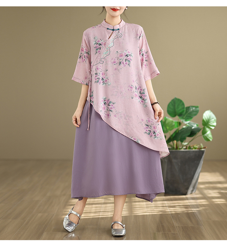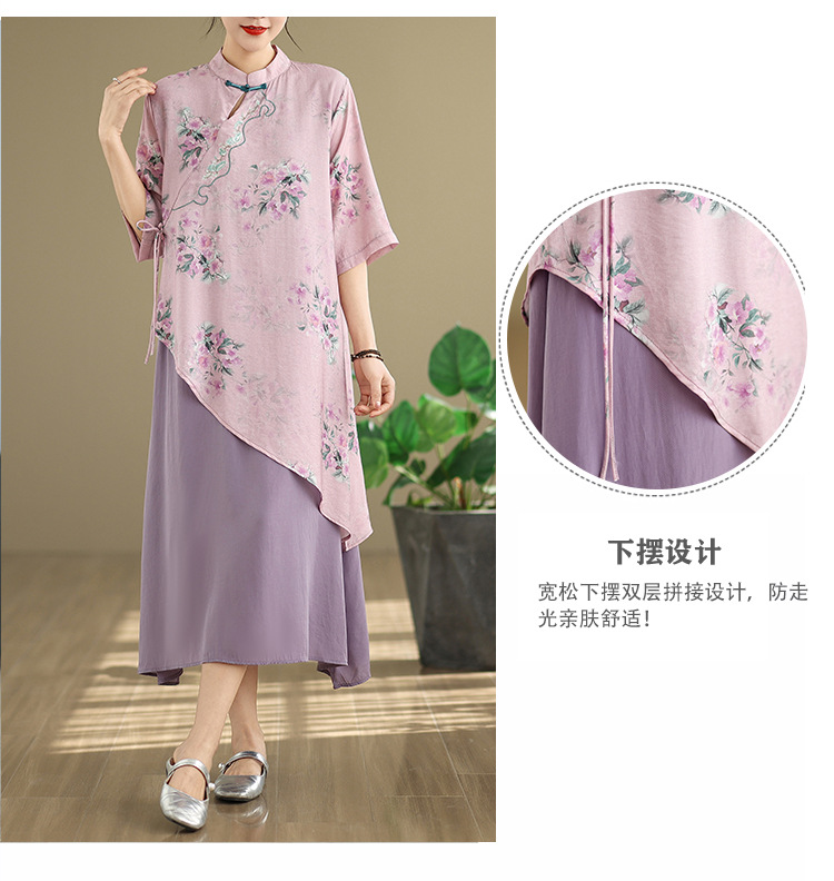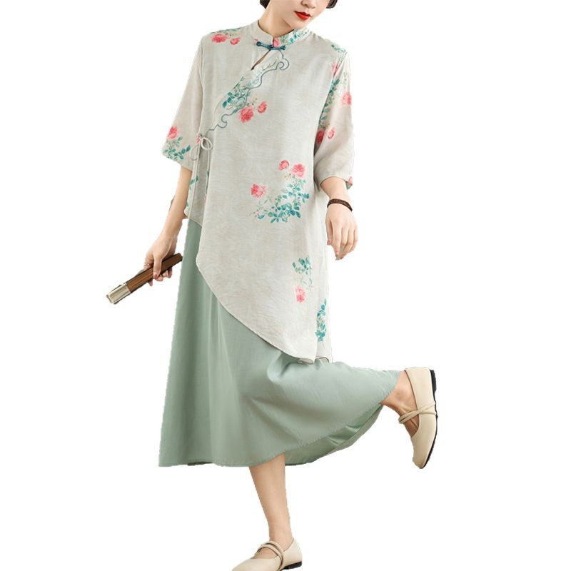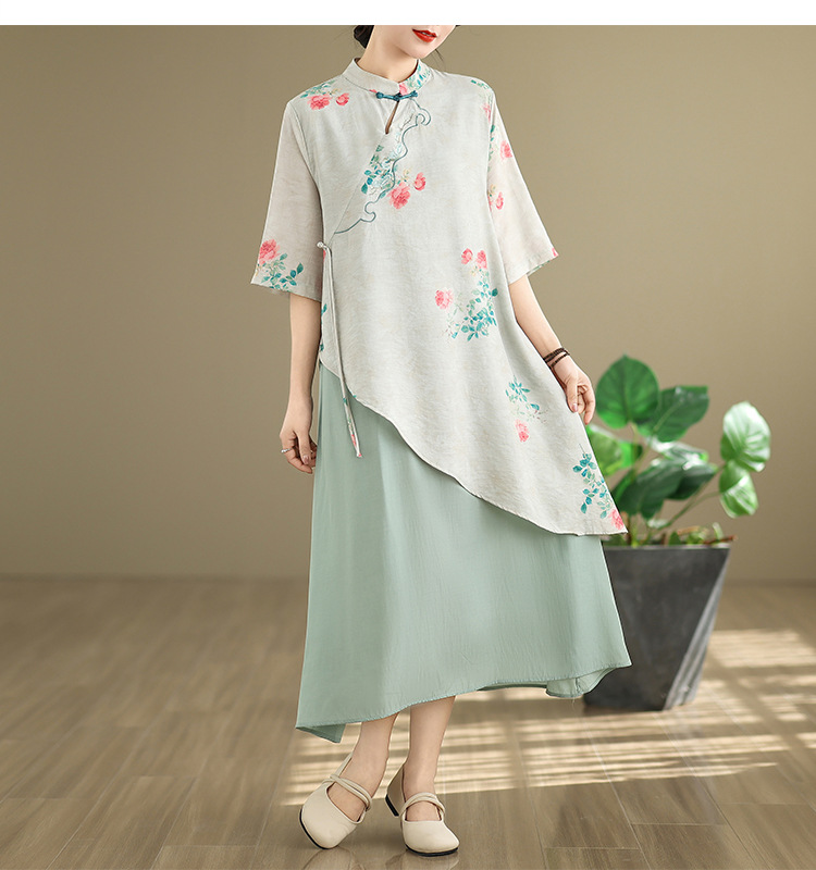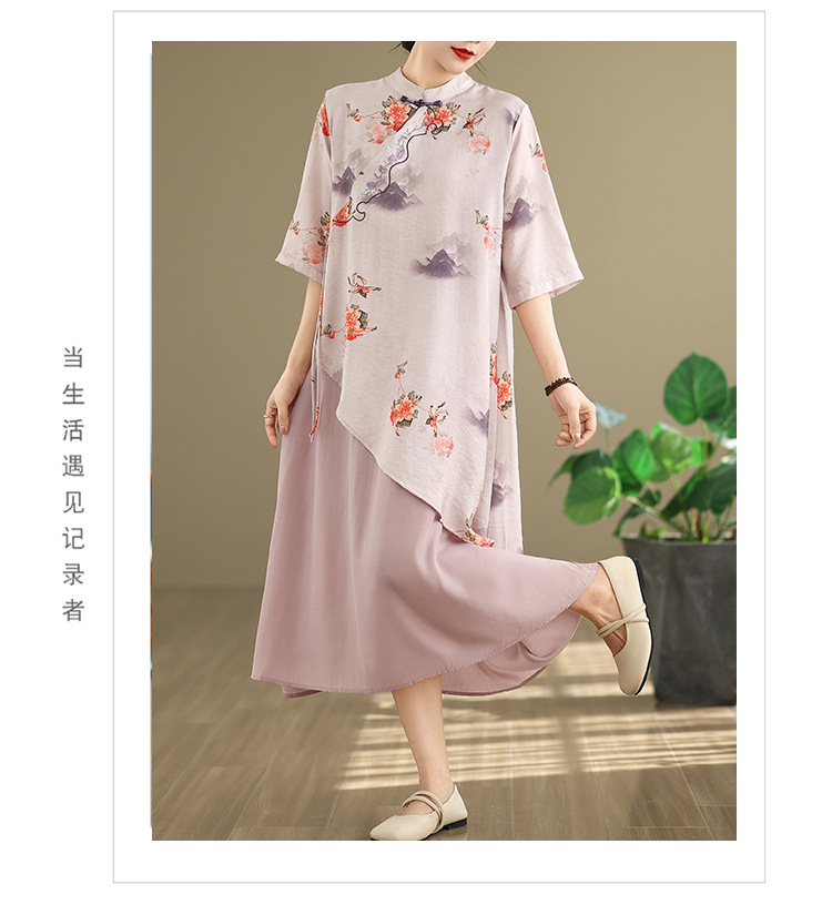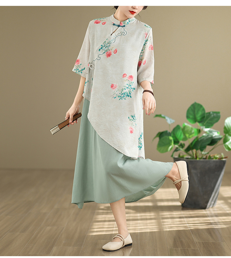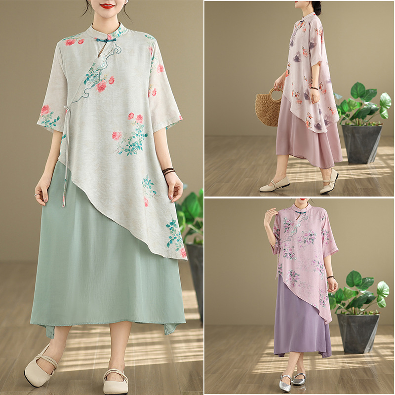 Новый китайский стиль cheongsam хлопчатобумажное платье лето 2025 новое лето мама летнее платье плюс размер женская толстая юбка мм