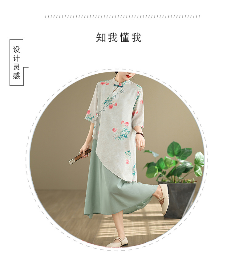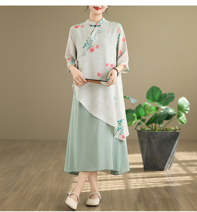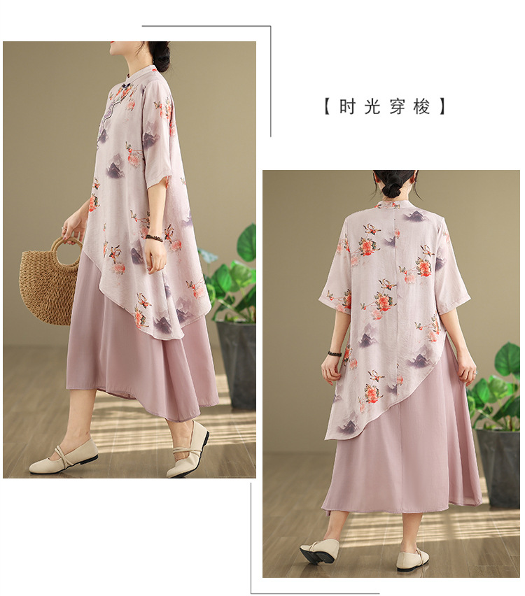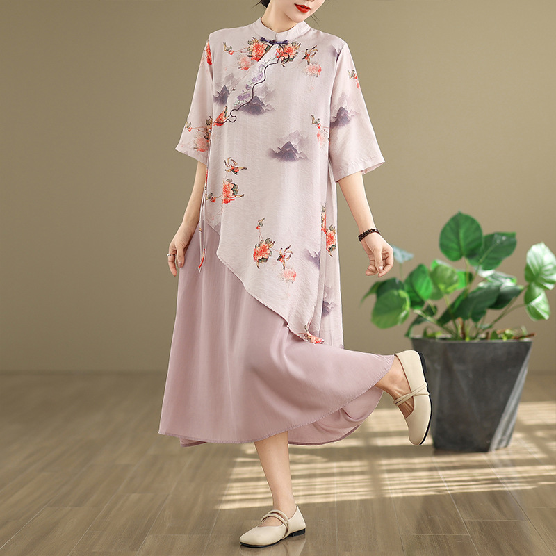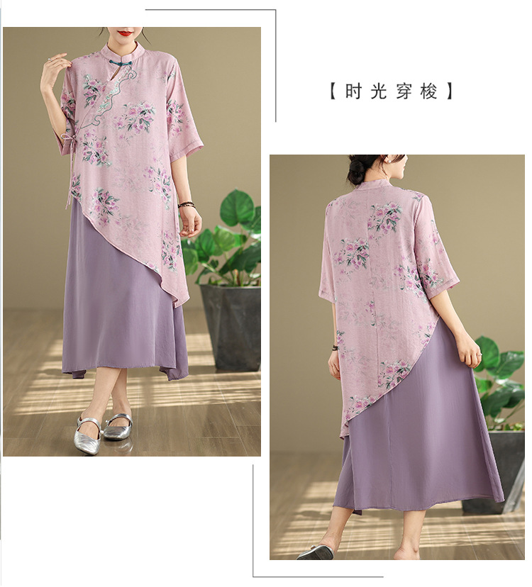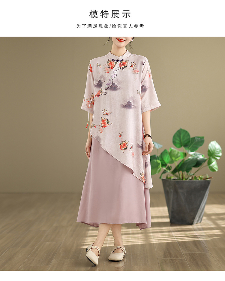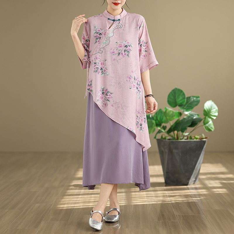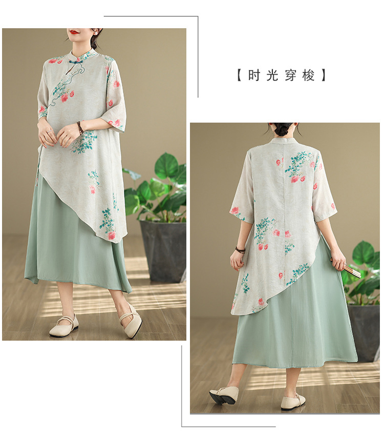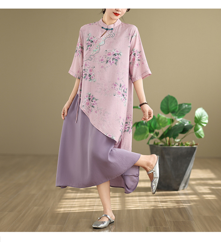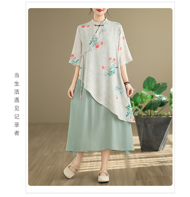 Новый китайский стиль cheongsam хлопчатобумажное платье лето 2025 новое лето мама летнее платье плюс размер женская толстая юбка мм