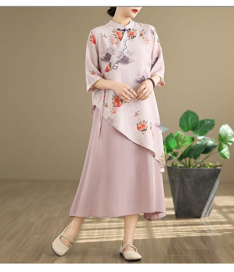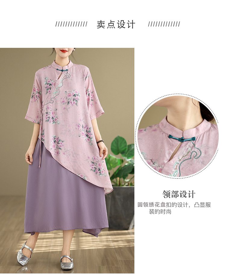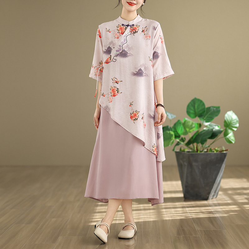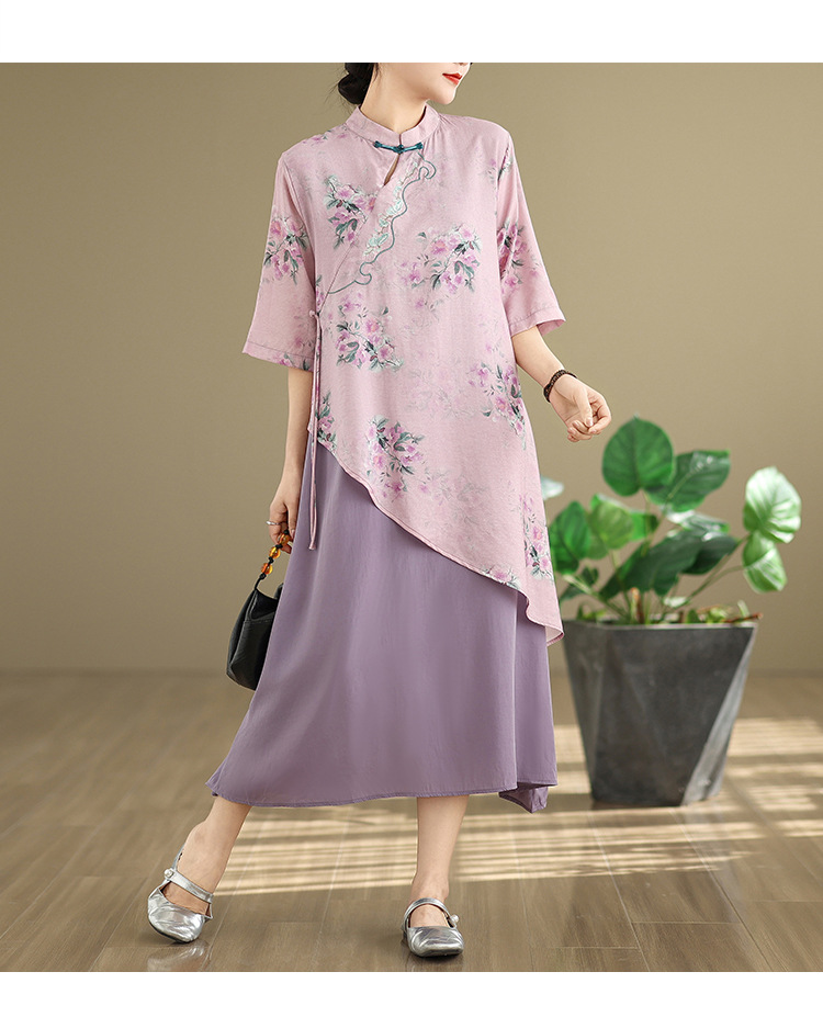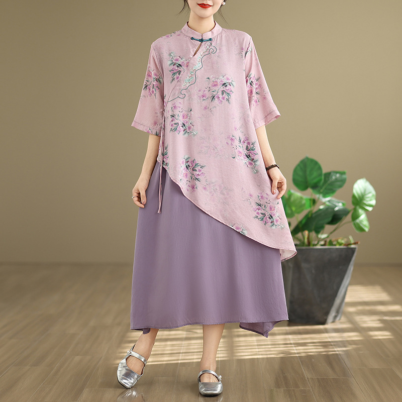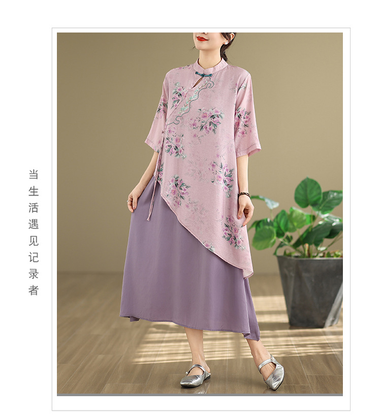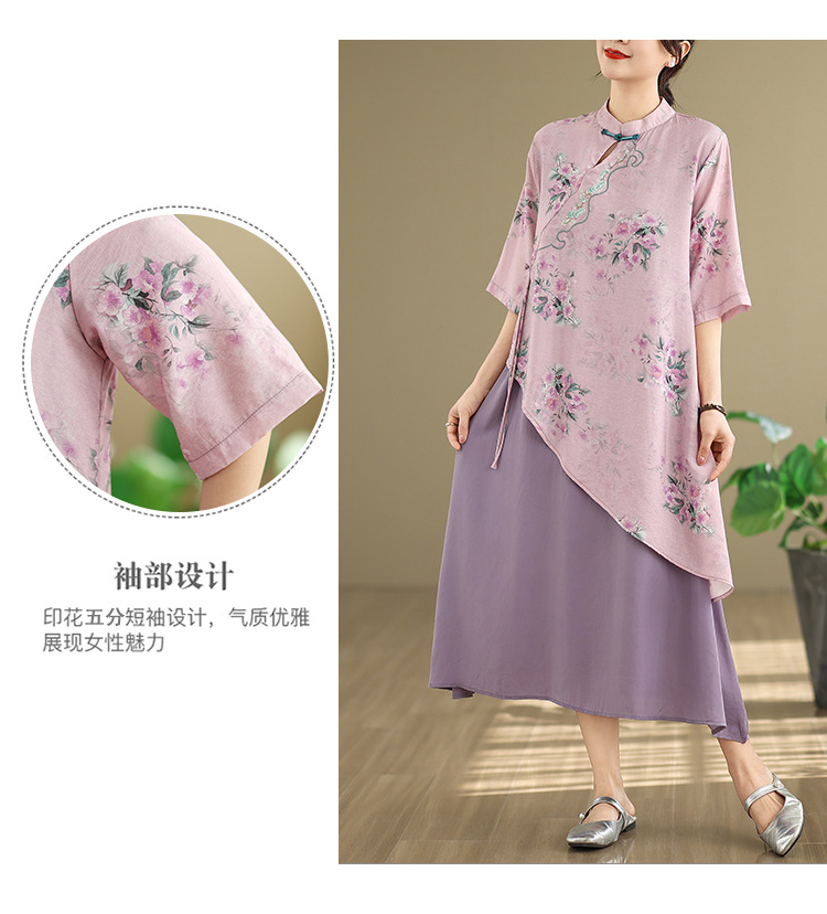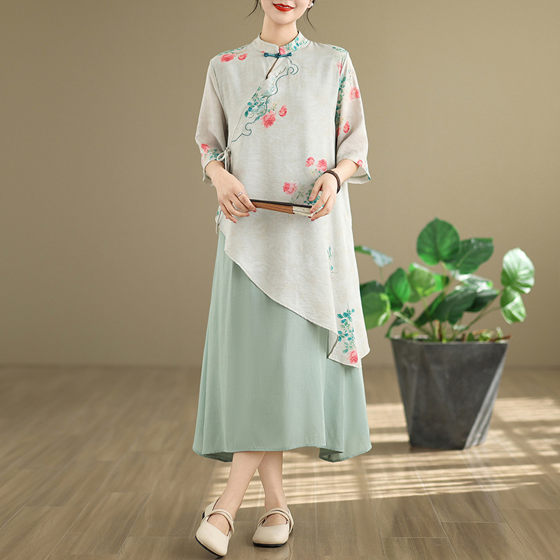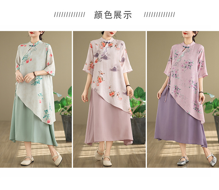 Новый китайский стиль cheongsam хлопчатобумажное платье лето 2025 новое лето мама летнее платье плюс размер женская толстая юбка мм