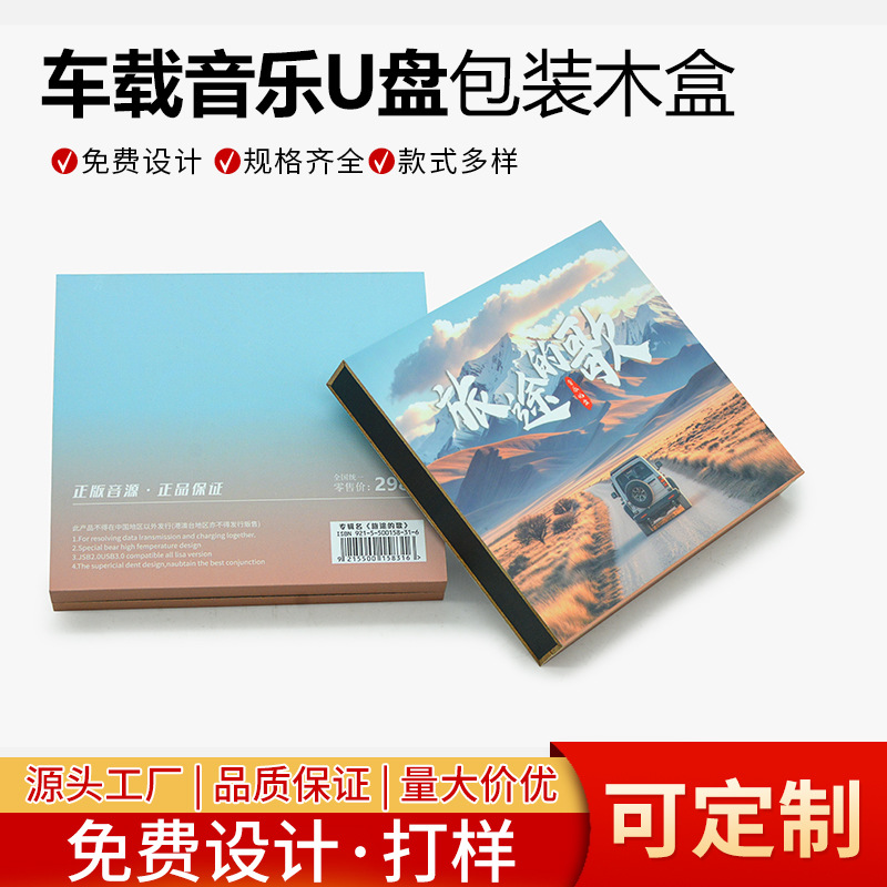 Новая модель 2025 года: упаковка для USB-накопителей TikTok класса люкс для автомобильной аудиосистемы, деревянная коробка с откидной крышкой для USB-накопителей DJ, в наличии