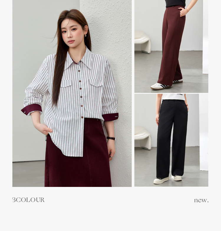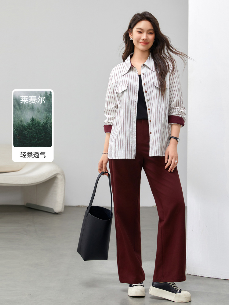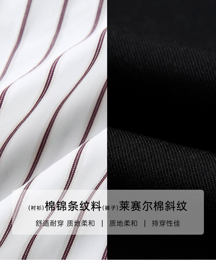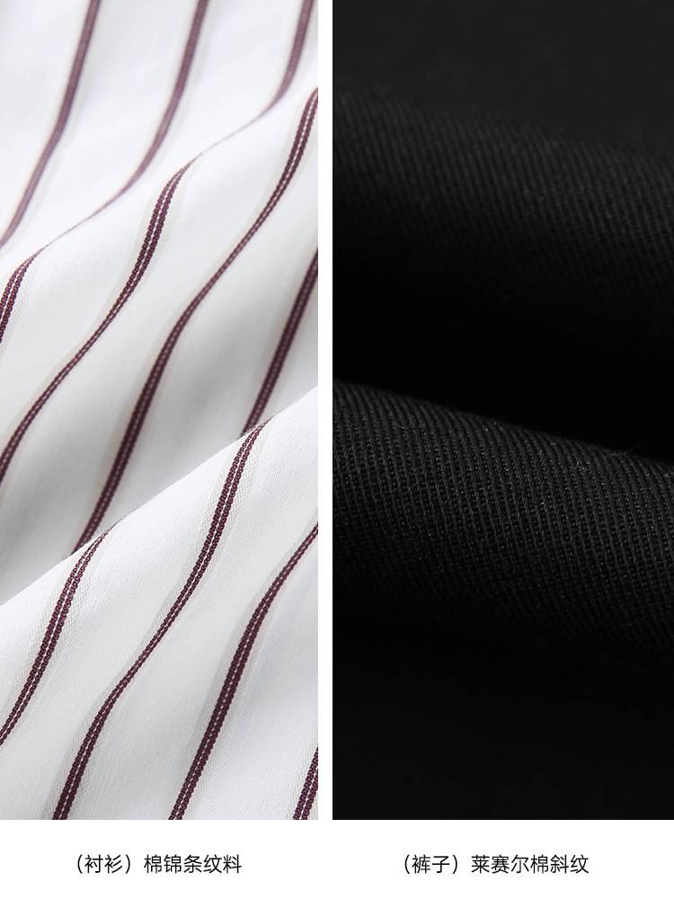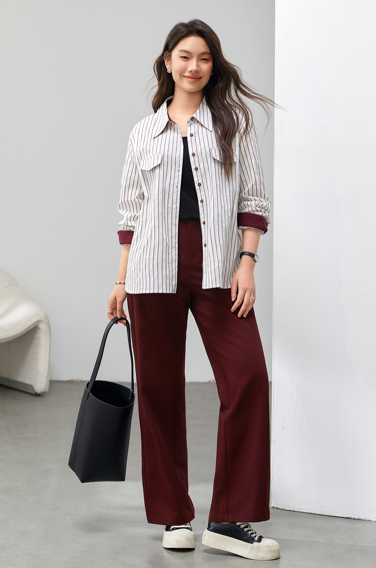 Полосы [рубашка QJ5259]; Ржаво-красный [Брюки QK0058]; Черные [Брюки QK0058]