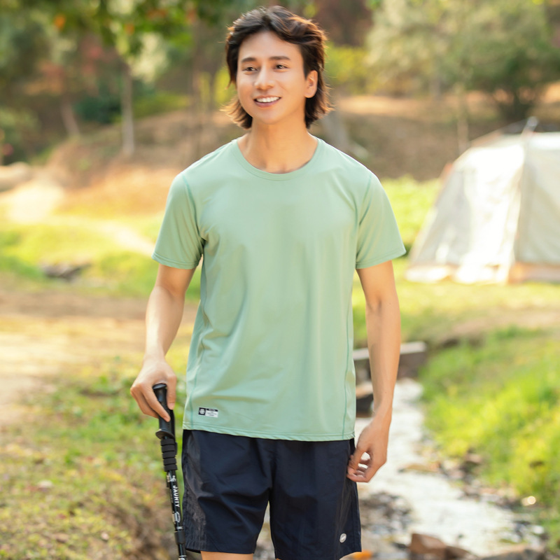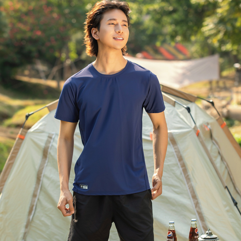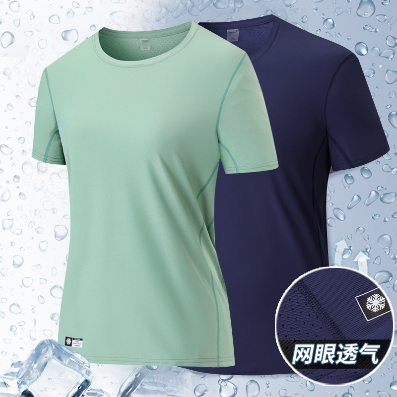 Спортивные футболки женский фитнес-ледяной шелк бег сплошной цвет с половиной рукава быстросохнущий костюм мужской на открытом воздухе потеет тренировка с короткими рукавами
