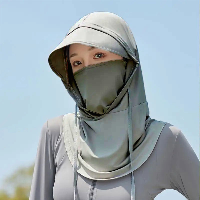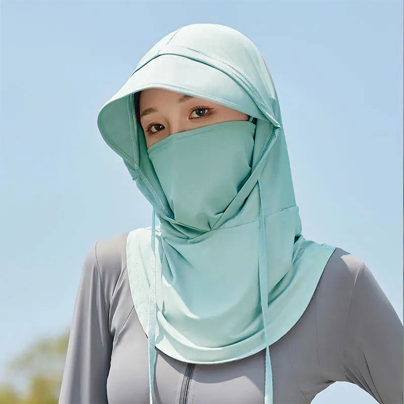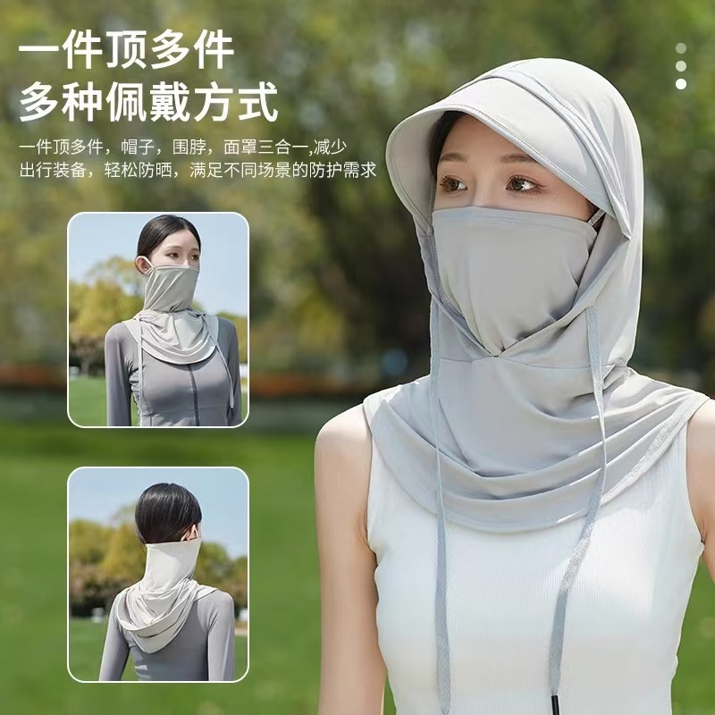 Летняя маска с козырьком, интегрированная шляпа, маска для всего лица, уличный мотоциклетный велосипедный капюшон, дышащая шляпа от солнца из ледяного шелка