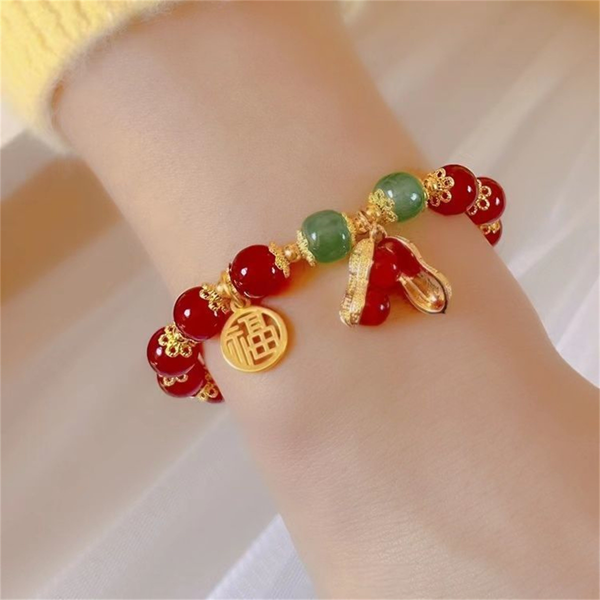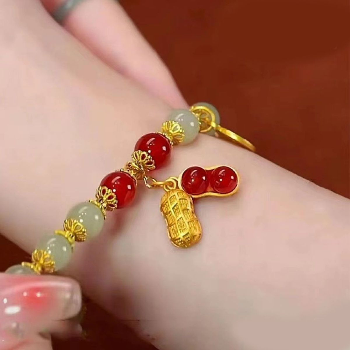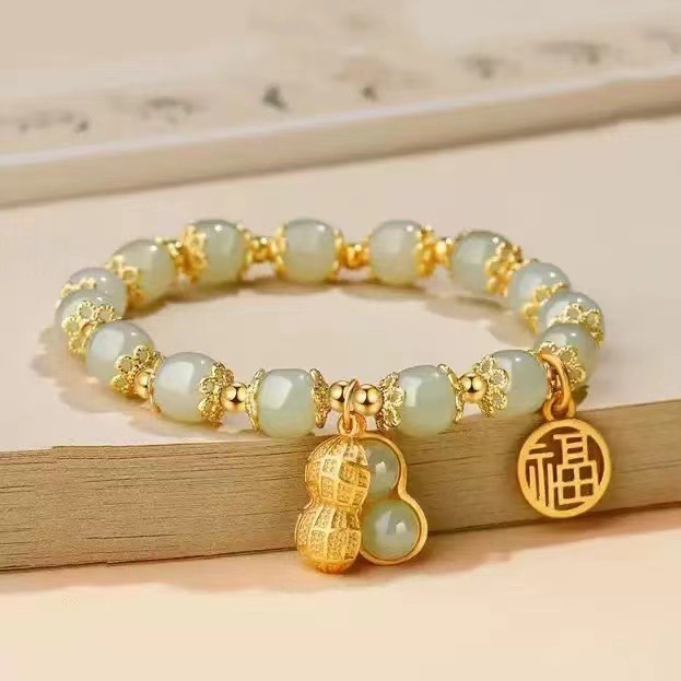 Новый китайский стиль, браслет из кристаллов арахиса на удачу, ювелирные изделия, оптовый производитель, прямые продажи, привлекающий богатство дизайн из нефрита Хэтиан.