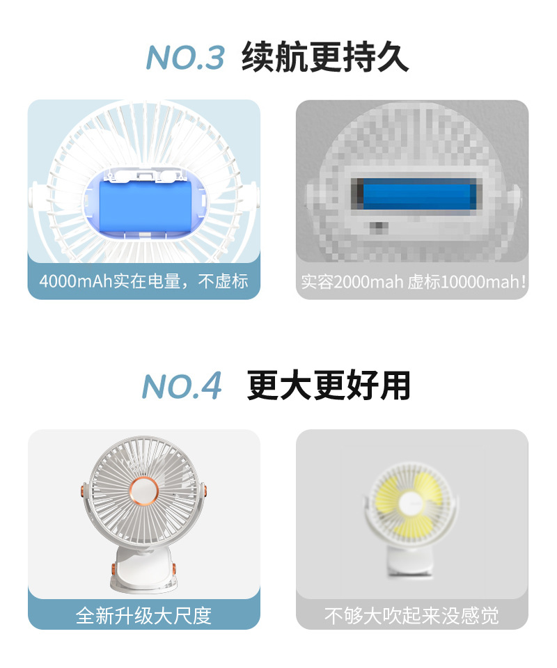 Вентилятор с креплением на клипсе для прикроватной тумбочки в общежитии, рабочего стола в офисе, тип с креплением на клипсе, 6inch маленьких USB-вентиляторов с возможностью подзарядки, низкий уровень шума, бесшумное устройство.