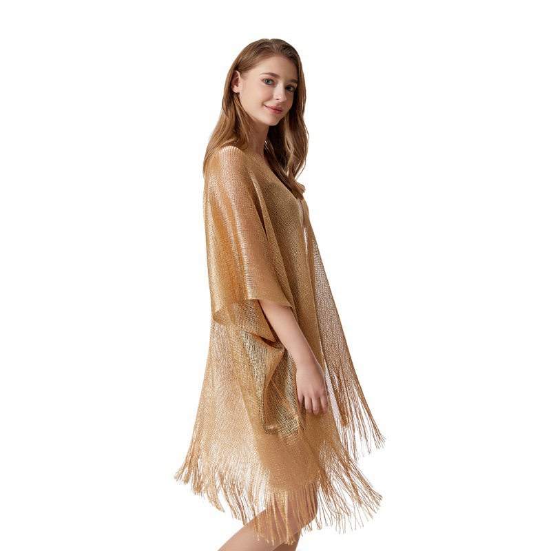 Трансграничное взрывное полотенце с плоской шалью из золота и серебра с рукавами