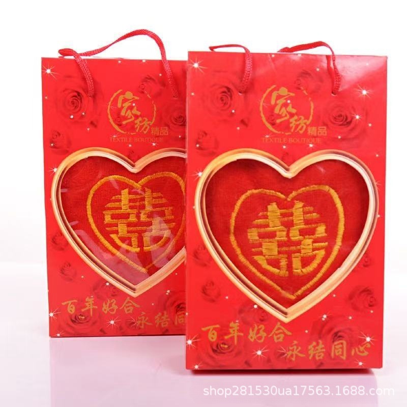 Подарочное полотенце с персонажем долголетия, большим красным банкетом на день рождения, красным благословением и сувениром на долголетие, полотенце в подарочной коробке с персонажем красного благословения