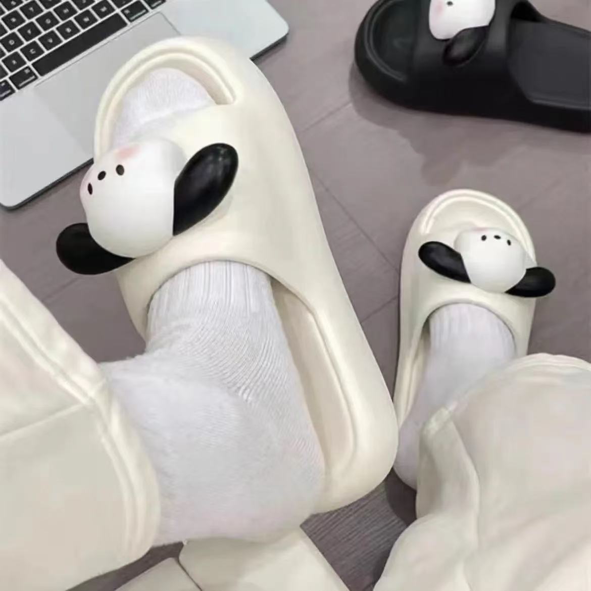Новинка 2024 года, тапочки с ощущением какашек для летнего дома, домашнего использования, новый стиль, нескользящие бесшумные тапочки с головой щенка, против запаха