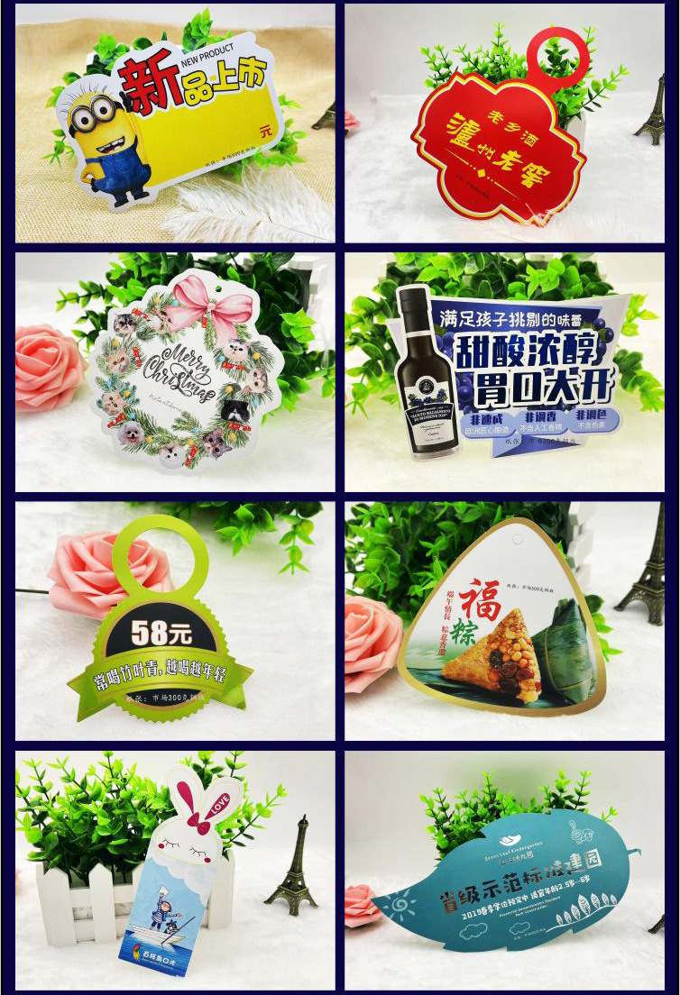 Печатная карточка упаковочной бумаги с цветным отверстием для складывания головки карточной карты в форме карниза в форме карниза небольшой этикетки бирка блистерная пластиковая карточка носки